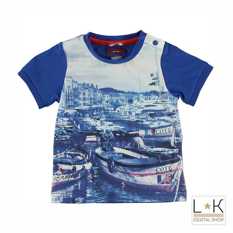 T-Shirt in Cotone Blu con Stampa Bambino Sarabanda Q525