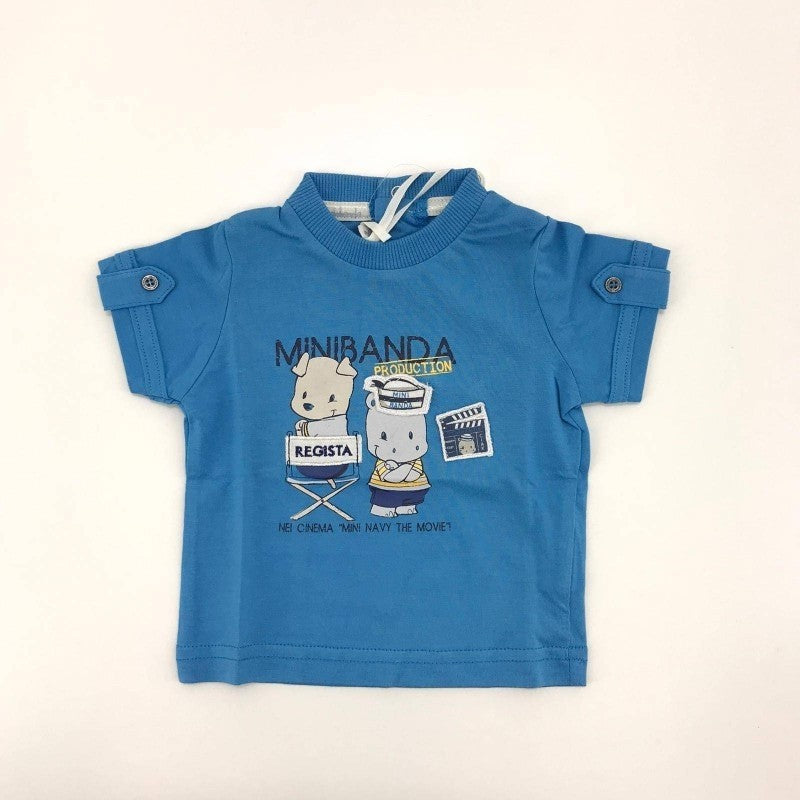 -T-Shirt in Cotone celeste in tinta unita con stampa e ricamo sul petto