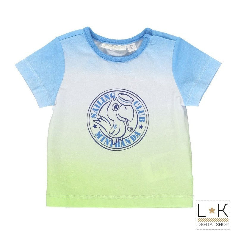 T-Shirt in Cotone Celeste-Verde Neonato Minibanda M631 - MINIBANDA - LuxuryKids