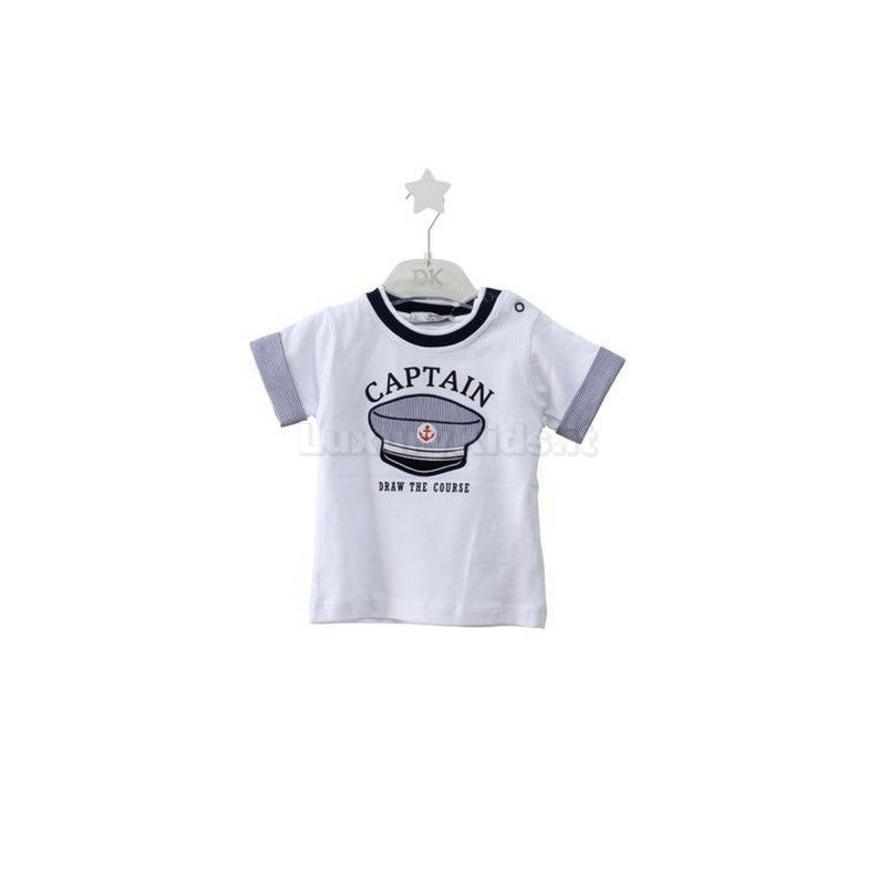 t-shirt in cotone base bianca con stampa e rifinitura blu