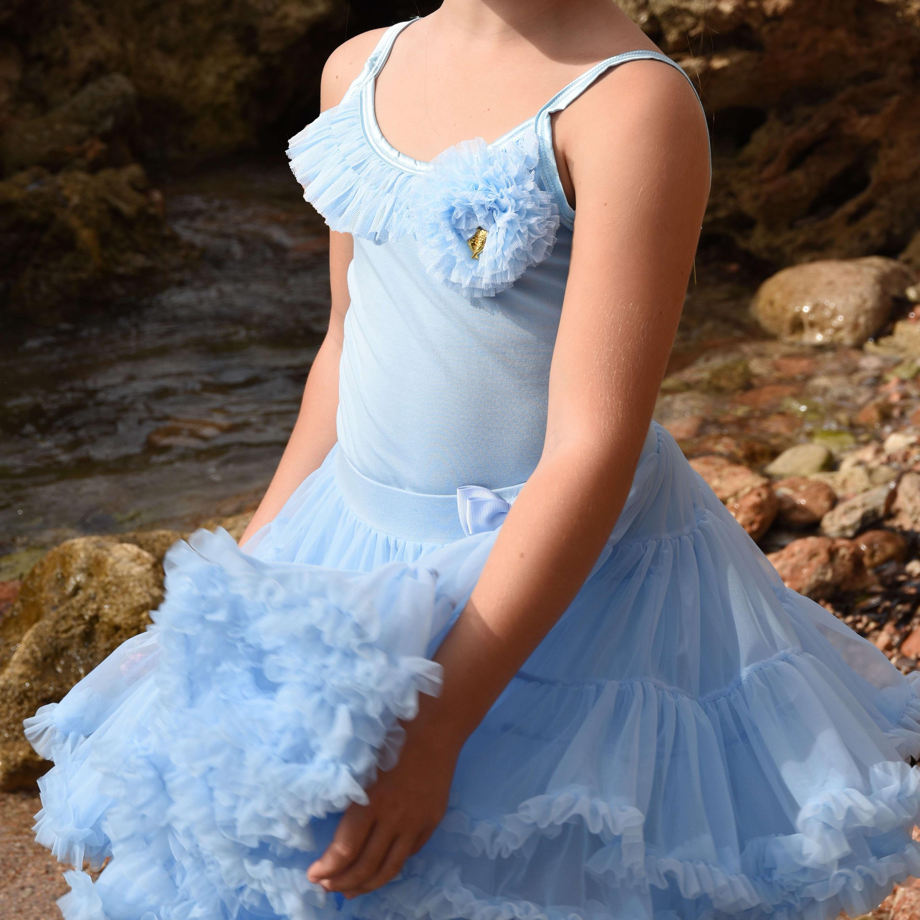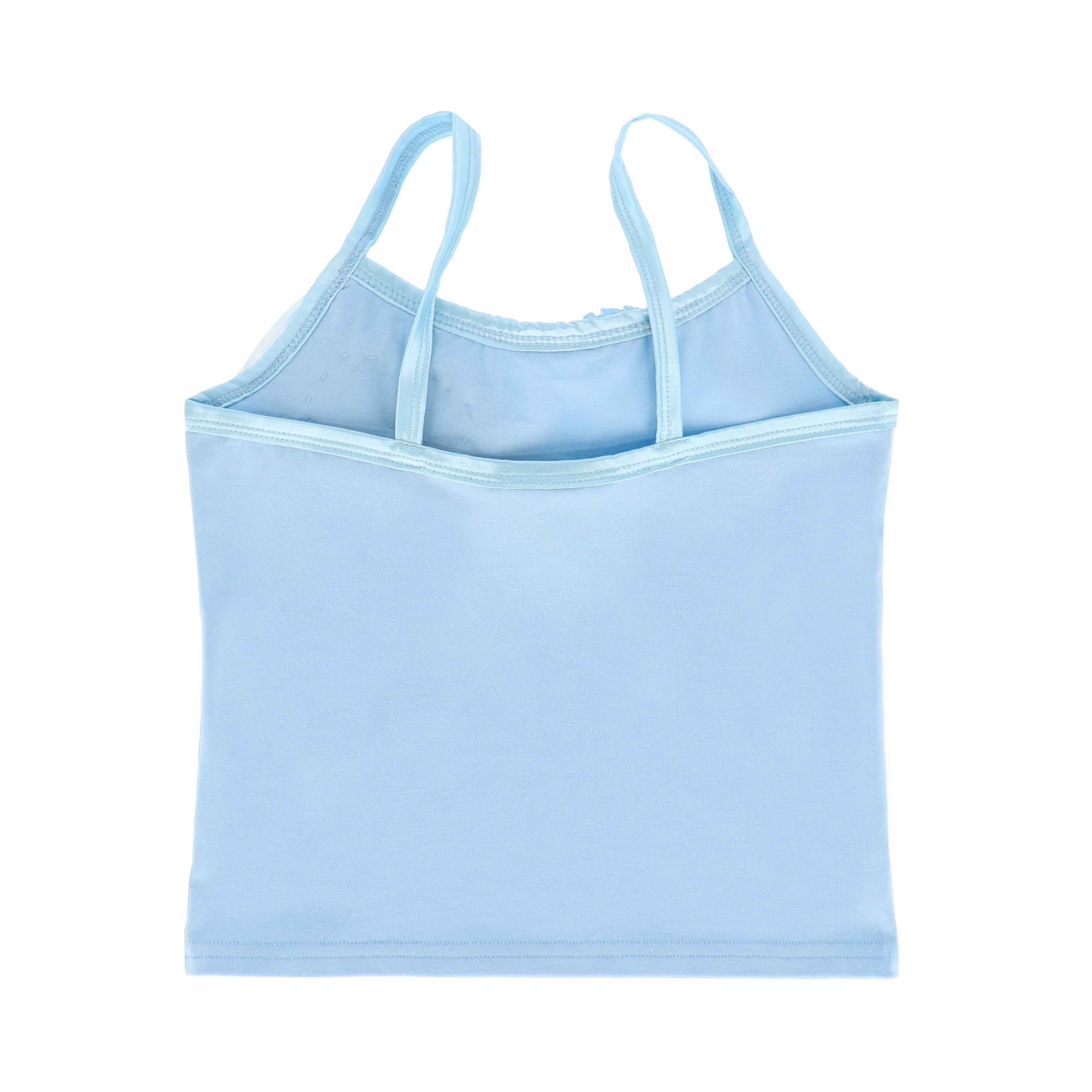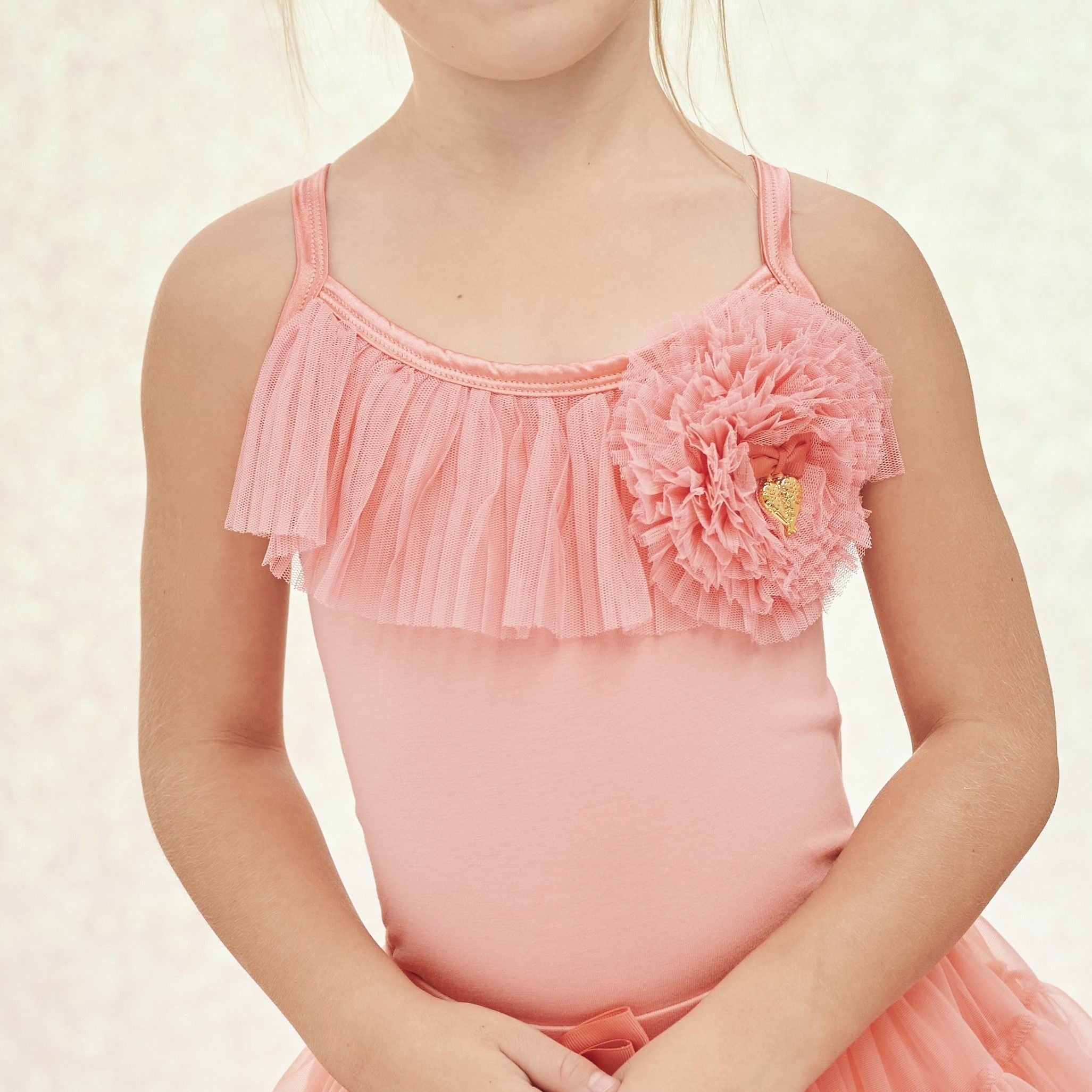 Top In Jersey Di Cotone Con Spalline Sottili Bordate In Raso. Colletto Con Volant Intorno Alla Scollatura. Sul Davanti Fiore In Morbido Tulle Rifinito Con Fiocchetto In Gros Grain E Ciondolo A Cuore Dorato.