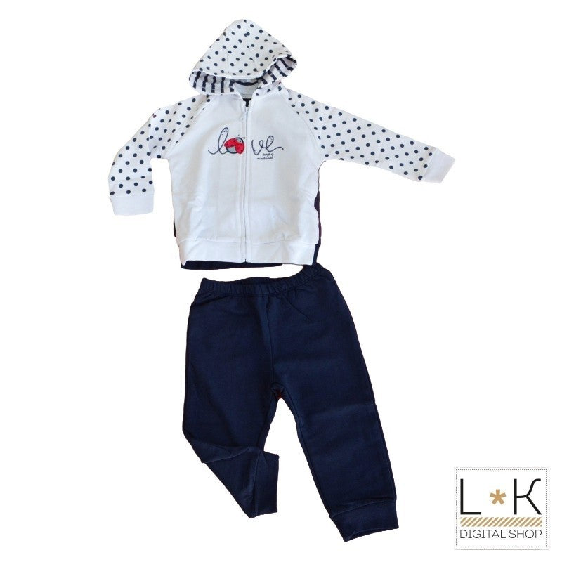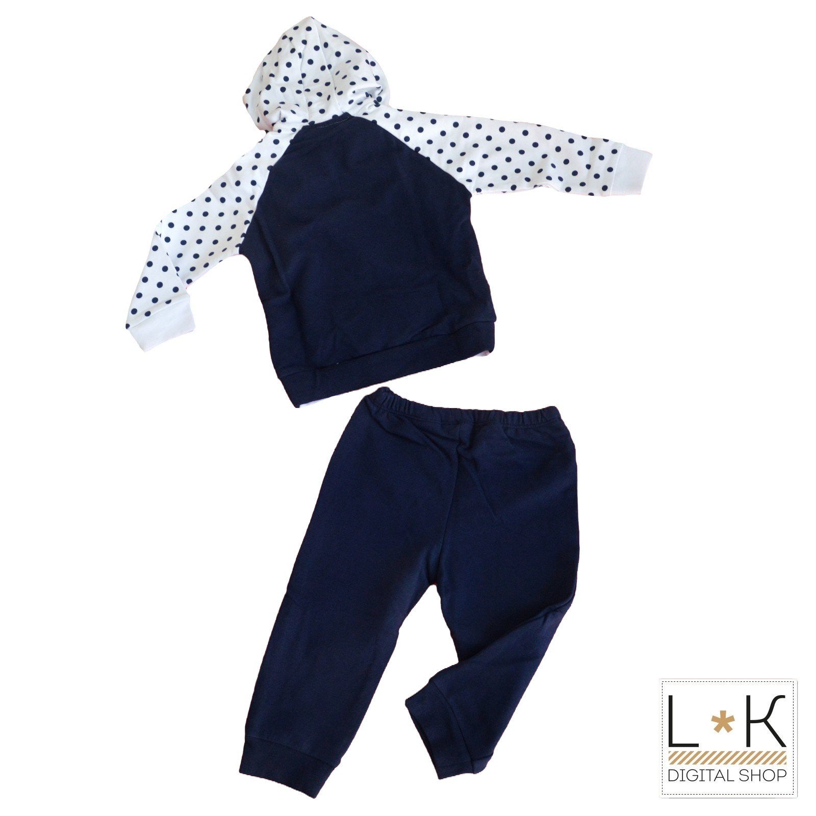 Tuta con Cappuccio in Cotone, Chiusura con Zip e Ricamo sul petto e Pois lungo le maniche e sul cappuccio.