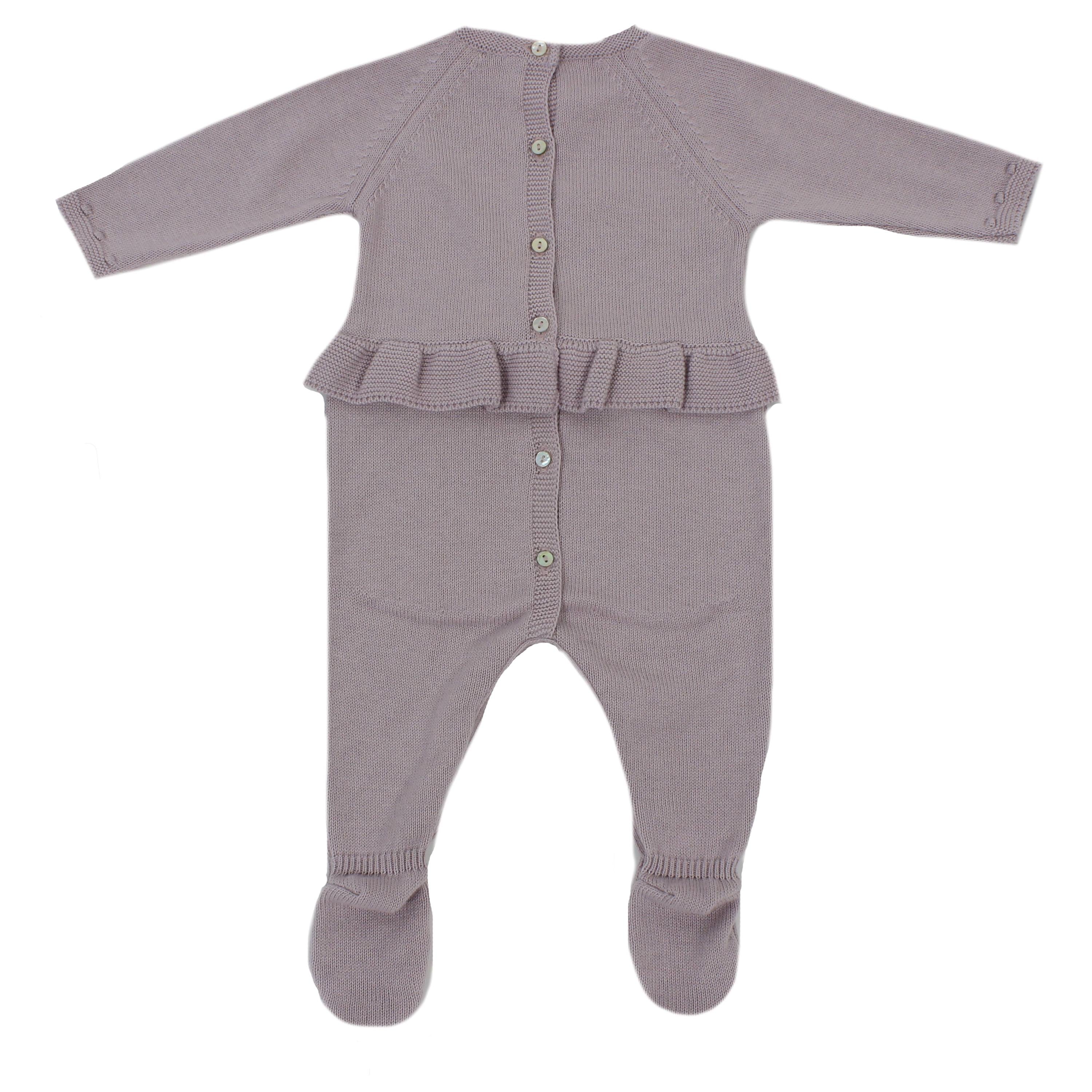 Tutina in caldo cotone a maniche lunghe con ricami sulla parte frontale e chiusura posteriore e a cavallo.