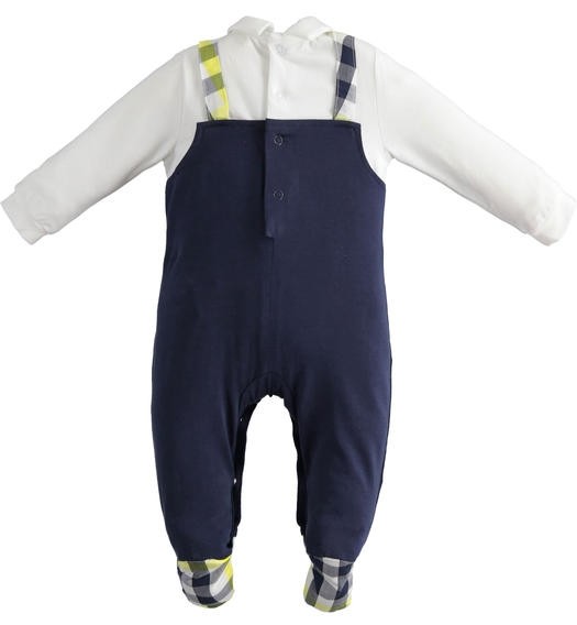 Tutina In cotone Finta Salopette Con colletto. Coniglietto Sul davanti. Apertura Sul Retro e In Mezzo Alle Gambe con Bottoncini a Pressione.