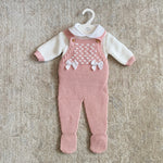 Questo completo neonato in due pezzi include una tutina intera con piedini e un maglioncino raffinato con colletto in piquet, pensato per garantire comfort e stile. Perfetto come corredino, combina praticità e un design curato per accompagnare la tua bambina con morbidezza e eleganza fin dai primi giorni.