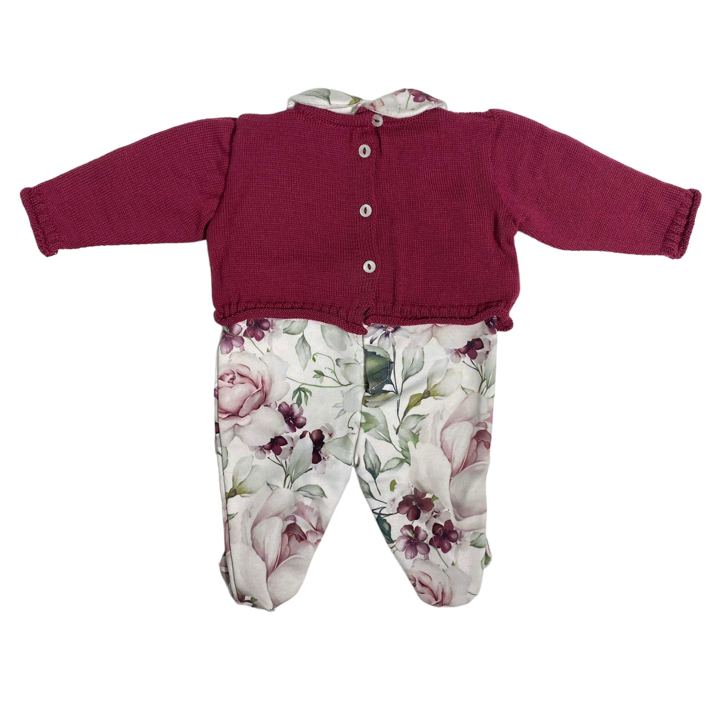 Tutina intera in caldo cotone floreale con maglia in lana staccabile.