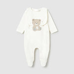 Tutina intera in cotone puro per neonati, realizzata con materiali delicati e traspiranti ideali per la pelle sensibile. Il design pratico include una bavetta integrata che protegge dagli schizzi durante l'allattamento e i pasti. La chiusura frontale facilita il cambio rapido, mentre le cuciture rifinite garantiscono comfort totale. Perfetta per le prime settimane di vita, combina funzionalità e stile con la qualità artigianale MAYORAL.