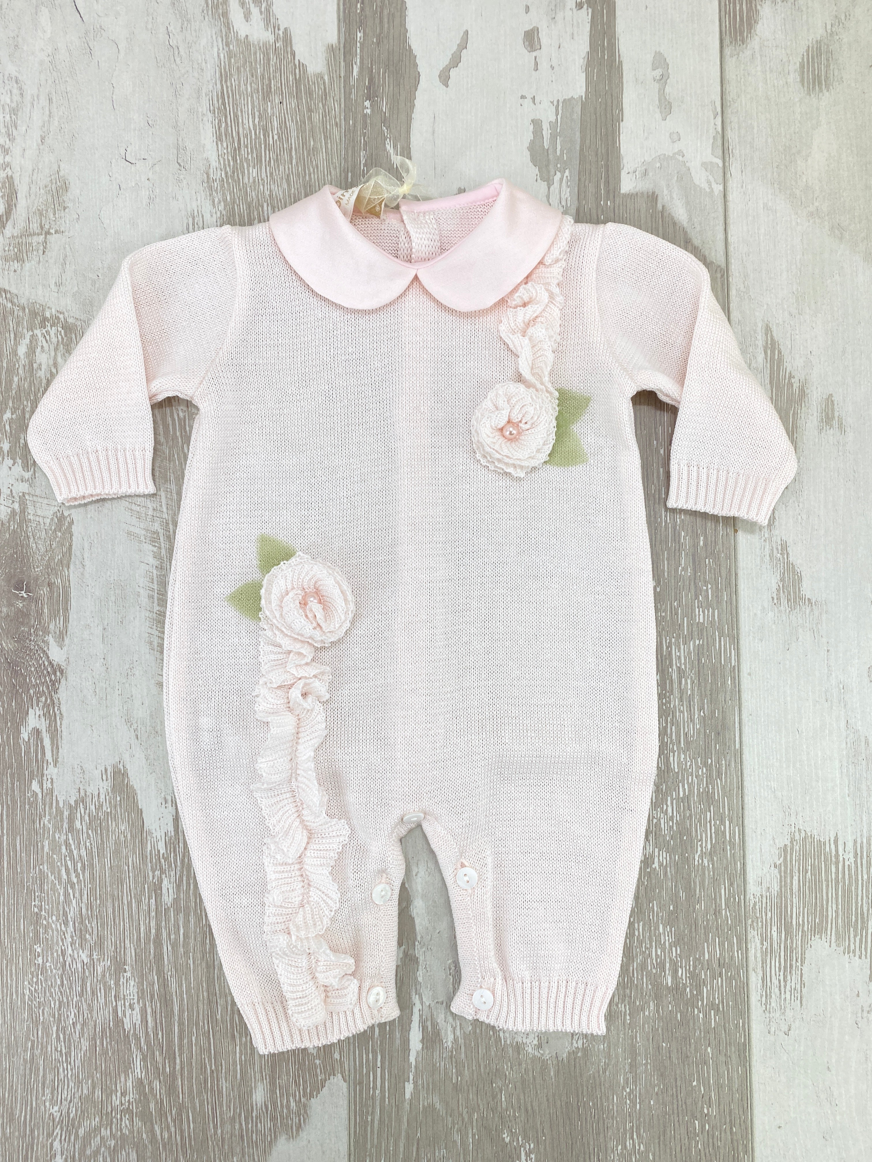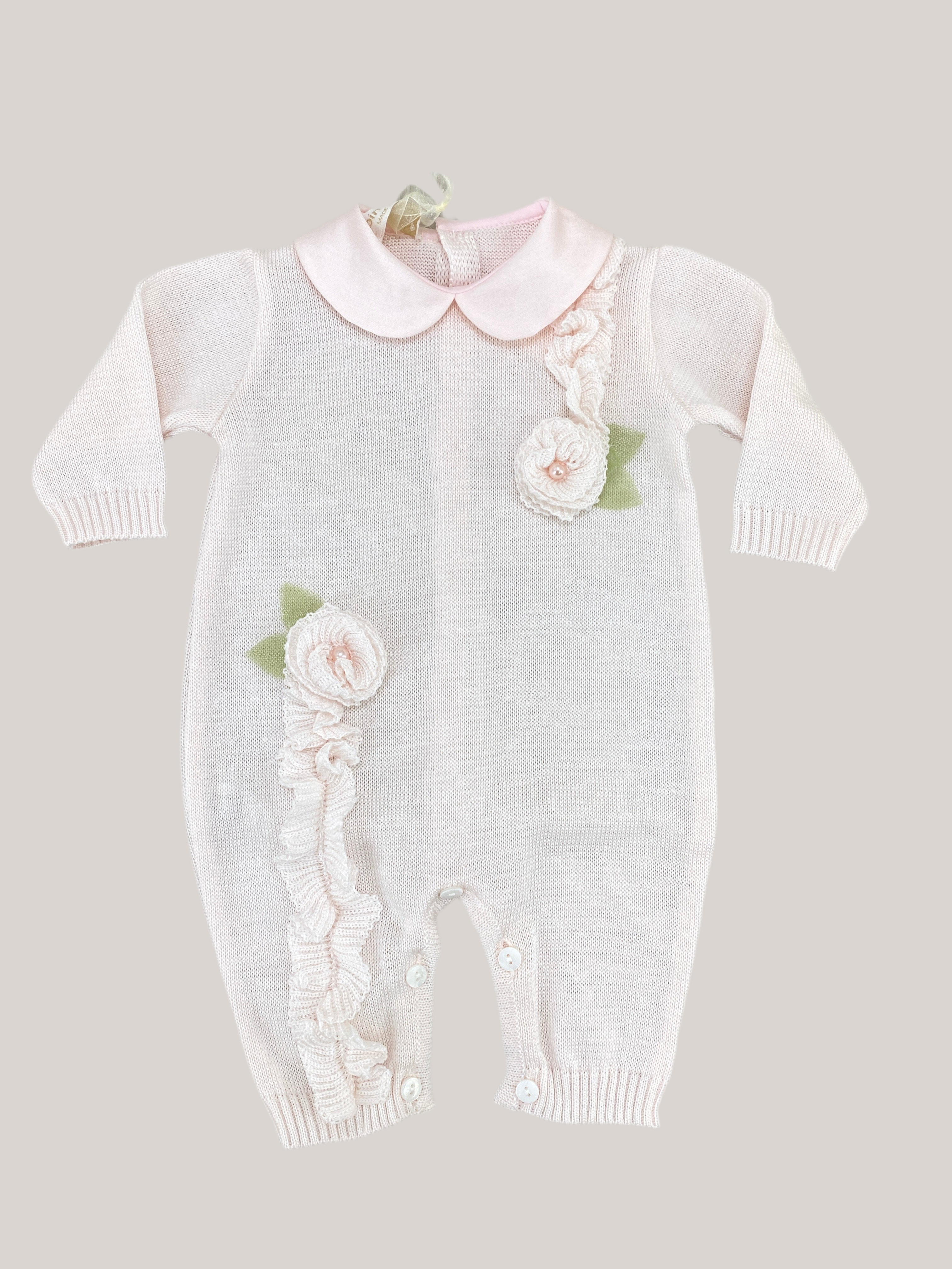 Realizzata in filo di cotone, questa elegante tutina intera per neonate BIMBALO' presenta traforature e un grazioso fiore. Perfetta per l'uscita clinica e realizzata con materiali di alta qualità, garantirà il massimo comfort per la tua bambina.