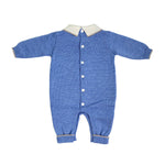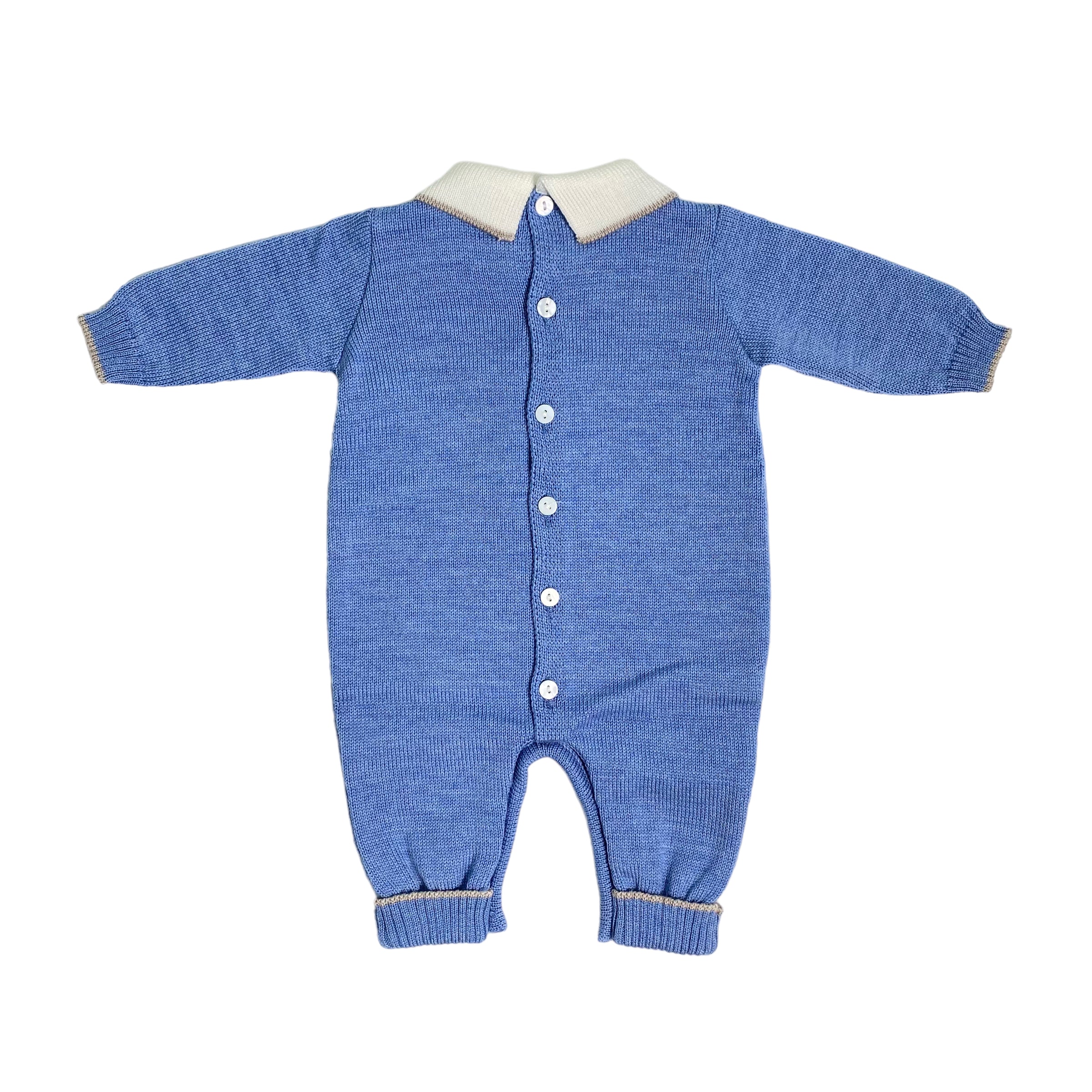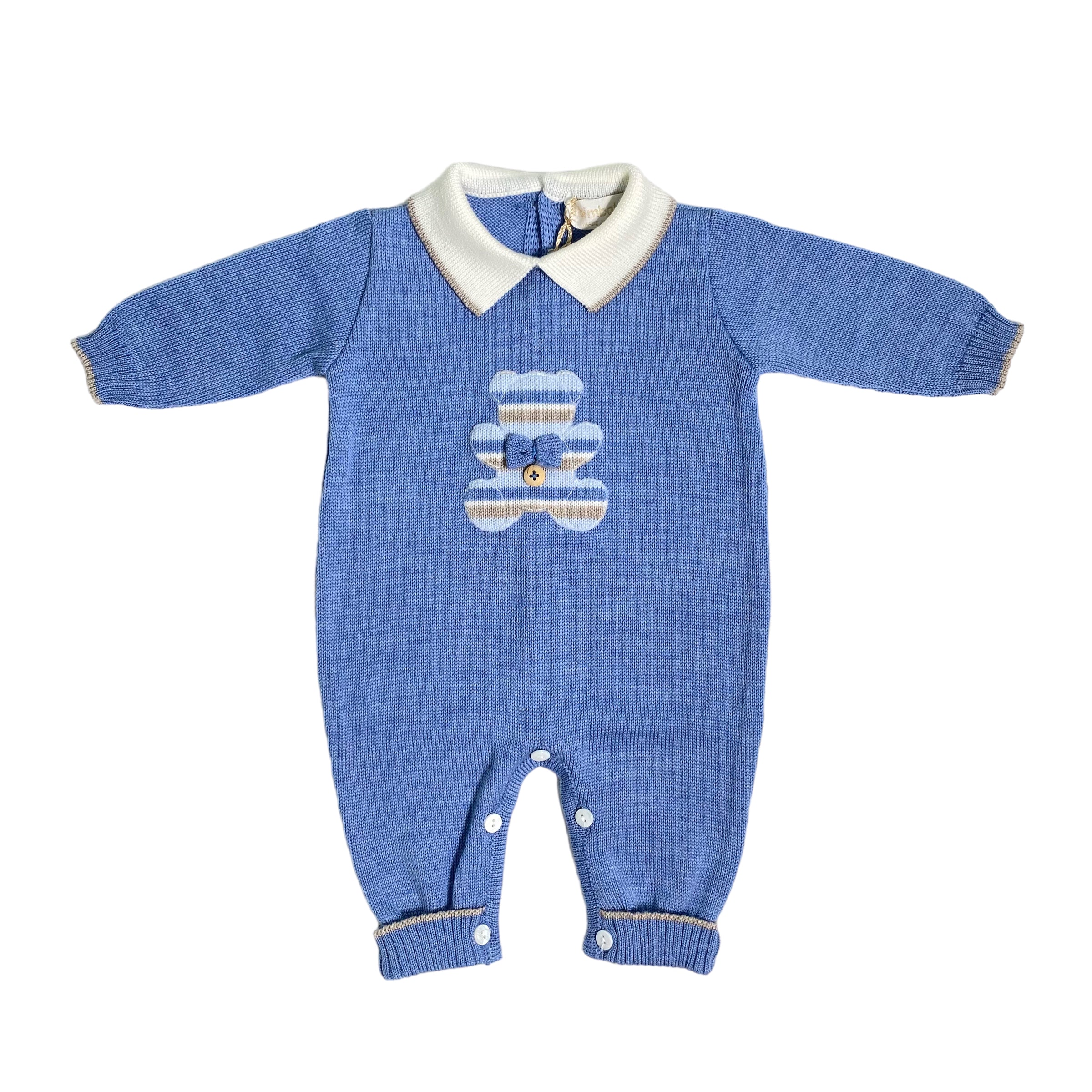 Tutina intera in pura lana 100%, in tinta unita bluette, con orsetto.
