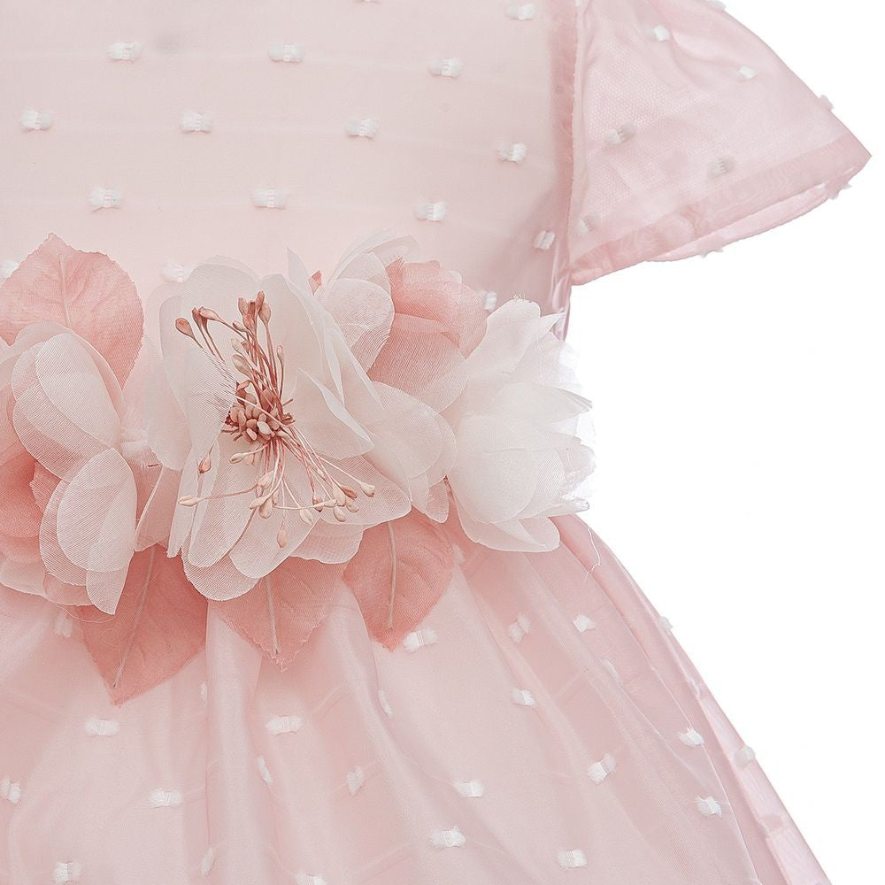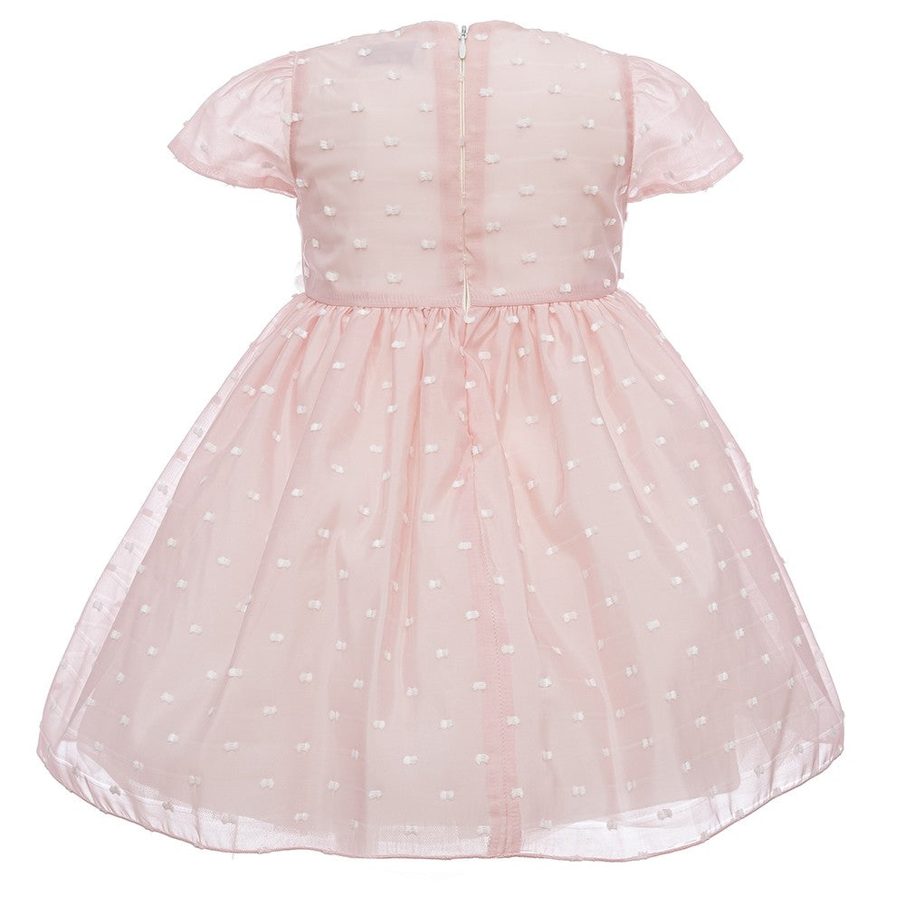 Abito Battesimale In Plumetis Rosa. Mezza Manica. Foderato internamente con Cotone e Tulle Rigido Per Mantenere Ampia La Gonna.