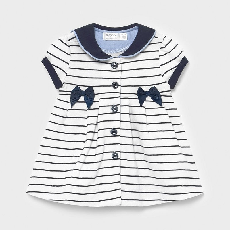 Vestito In Cotone Marinaretto A Righe Neonata MAYORAL 1801 - MAYORAL - LuxuryKids