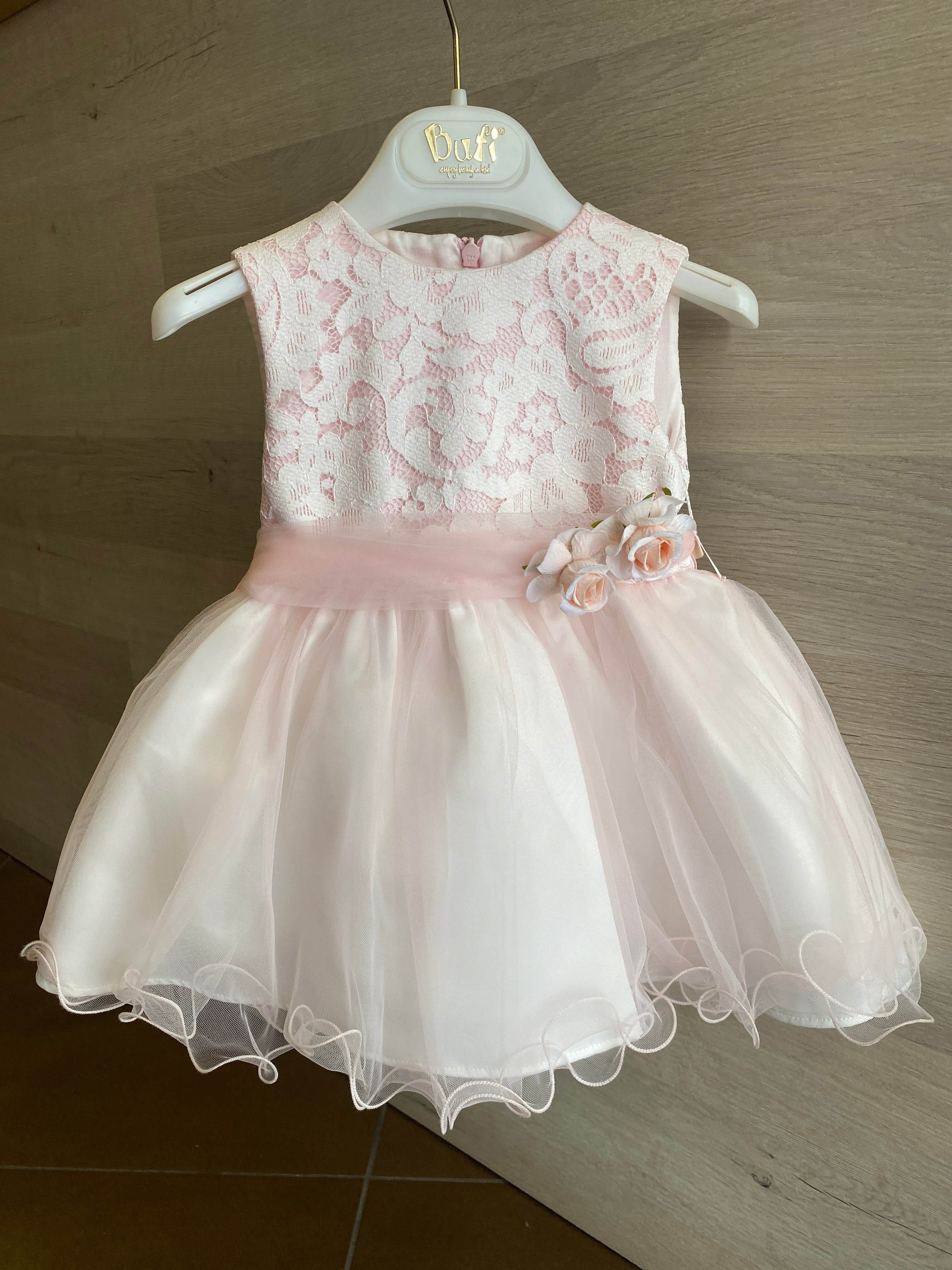Elegantes ärmelloses Kleid mit rosa Spitzenmieder Neugeborenes BUFI B1192A