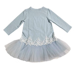 L'abito manica lunga in felpa e tulle bambina DAGA è l'ideale per un look elegante e alla moda. Realizzato con una gonna vita bassa in tulle e l'applicazione di pizzo sul davanti, è versatile e perfetto per ogni occasione. Non solo di tendenza, ma anche comodo grazie alla morbida felpa.