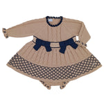 Questo abito corto a manica lunga è realizzato in tessuto anallergico in acrilico, ideale per la delicata pelle della neonata. La vita è valorizzata da eleganti fiocchi che conferiscono un tocco raffinato e alla moda, perfetto per occasioni speciali e per uno stile impeccabile. La scelta di materiali sicuri e confortevoli assicura benessere e protezione, unendo funzionalità e design sofisticato in un capo esclusivo.