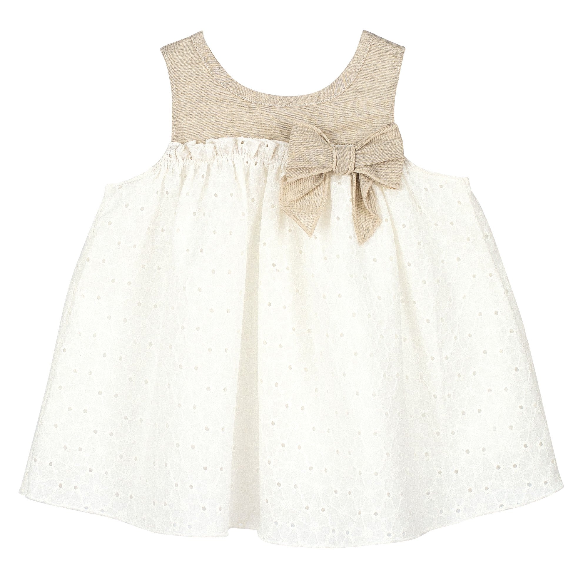 Ärmelloses Kleid aus Baumwolle mit weißer San-Gallo-Spitze, kontrastierendes Oberteil mit Schleife