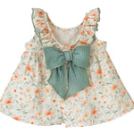 Questo elegante Abito Smanicato Fantasia Floreale per bambina di CALAMARO è realizzato in morbida garza di cotone. Lo stile svasato e la fantasiosa stampa floreale lo rendono un capo casual ma alla moda. Perfetto per ogni occasione, con fiocco e chiusura sul retro per un tocco di eleganza in più.
