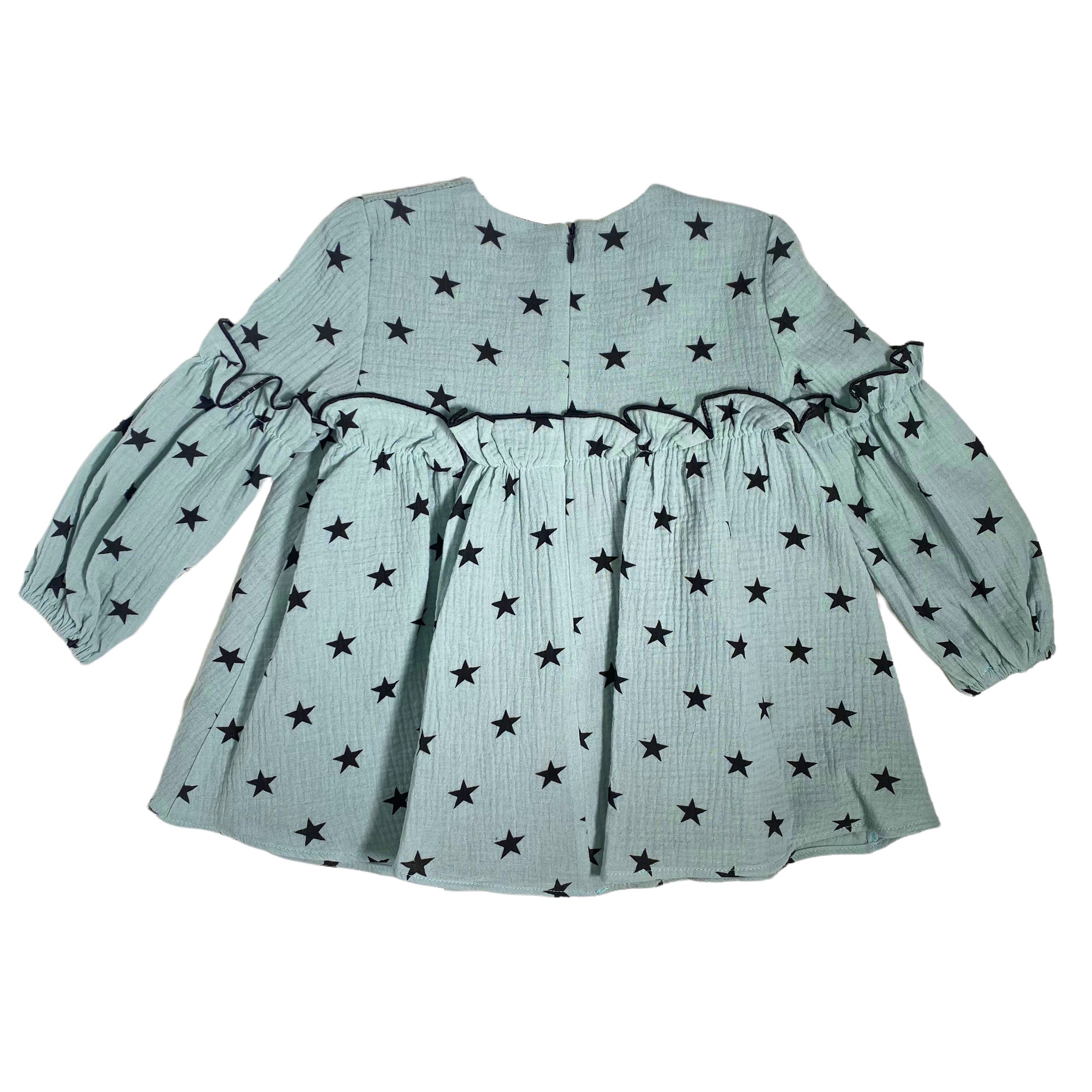 Ausgestelltes Kleid Aus Warmer Grüner Baumwolle Mit Sternen Kind DEL SUR 5191S