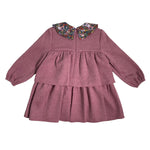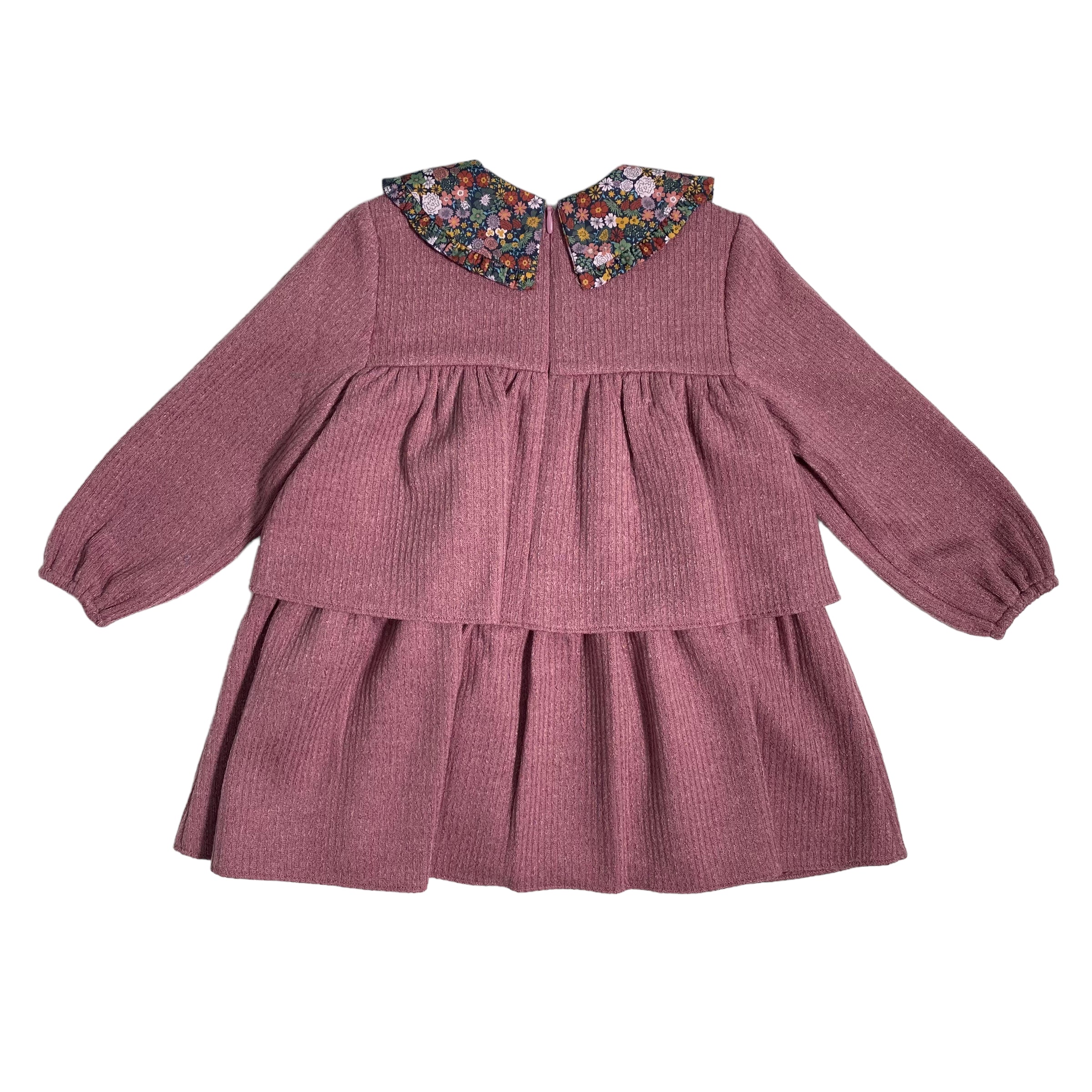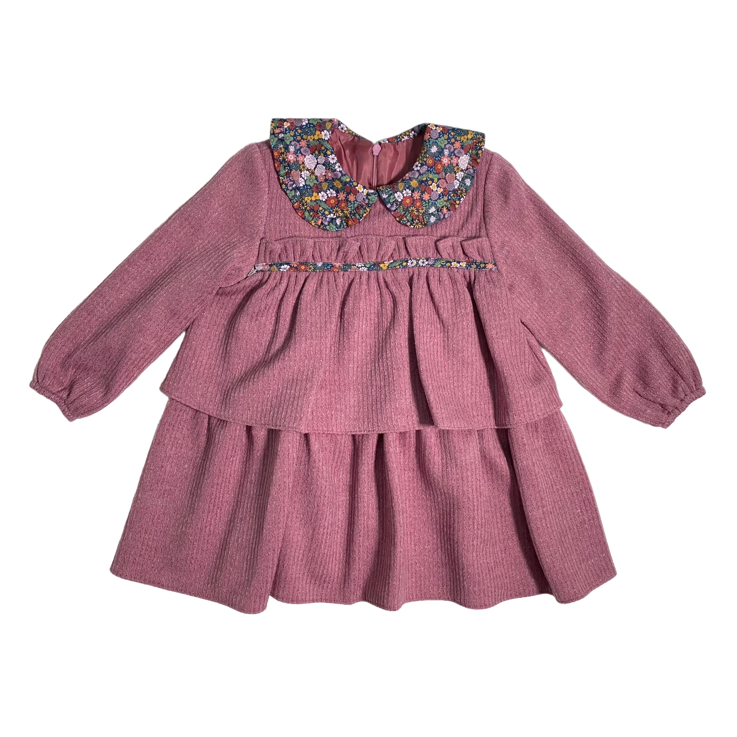 Ausgestelltes, langärmeliges Volantkleid aus warmer Baumwolle.