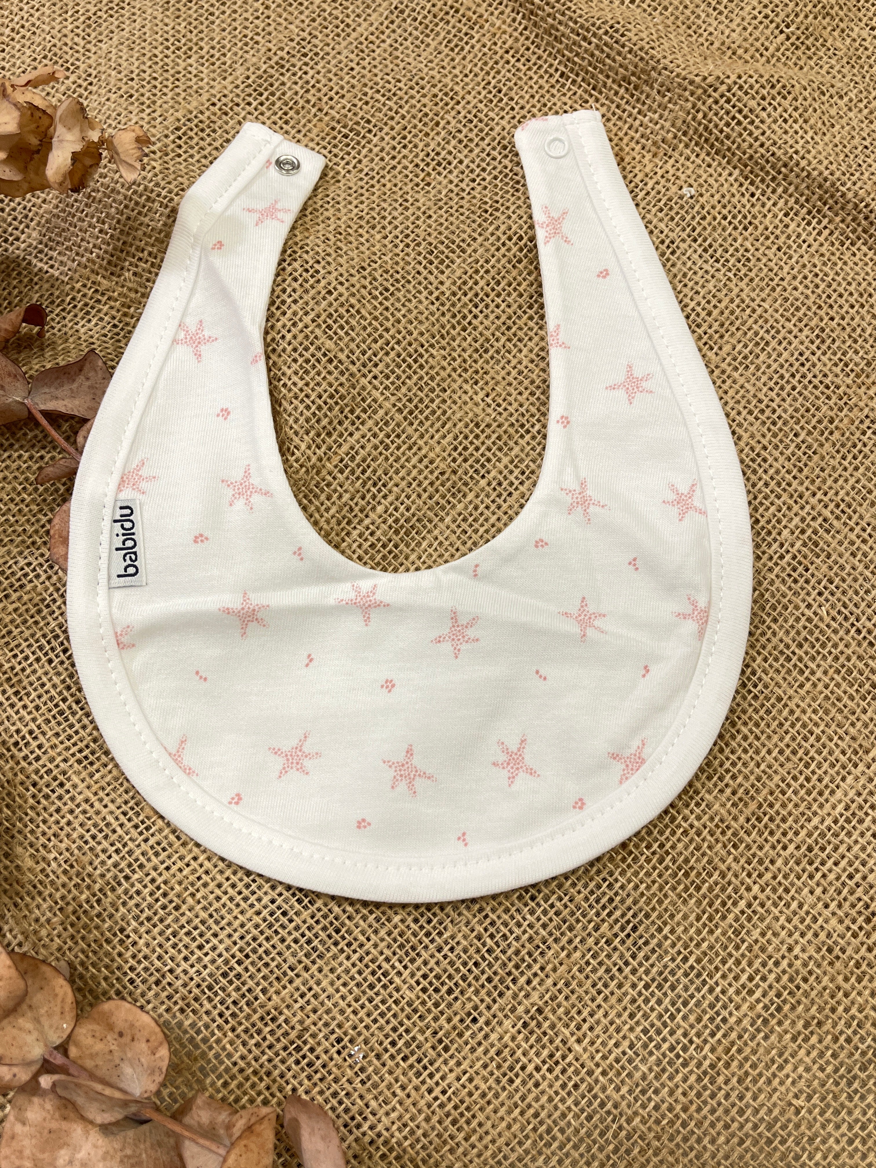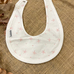 Einzellätzchen aus Baumwolle in zwei Farben, rosa oder hellblau. Meeresphantasie unter dem weißen Sockel