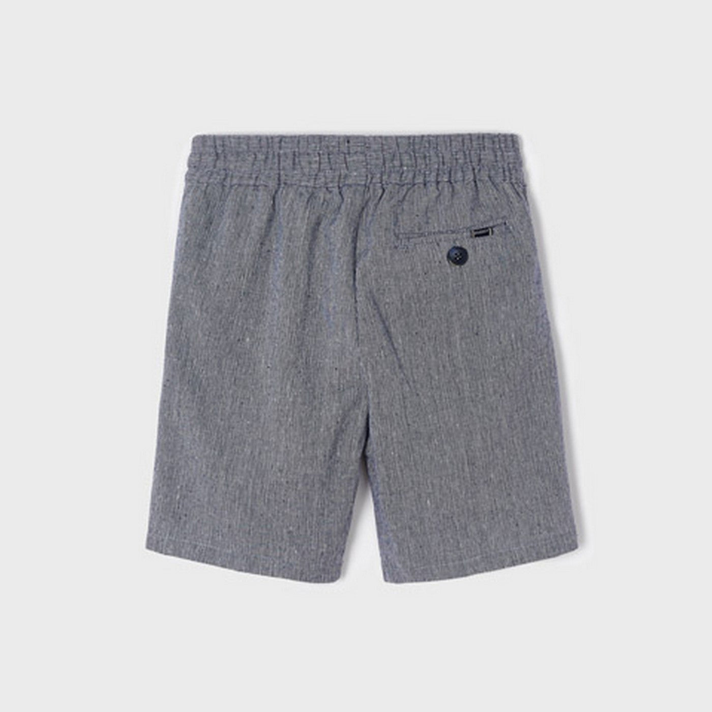 Bermuda mit blauem elastischem Bund, Streifenmuster.