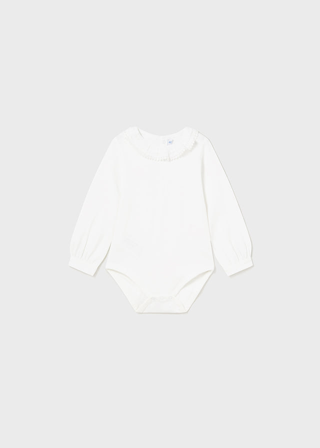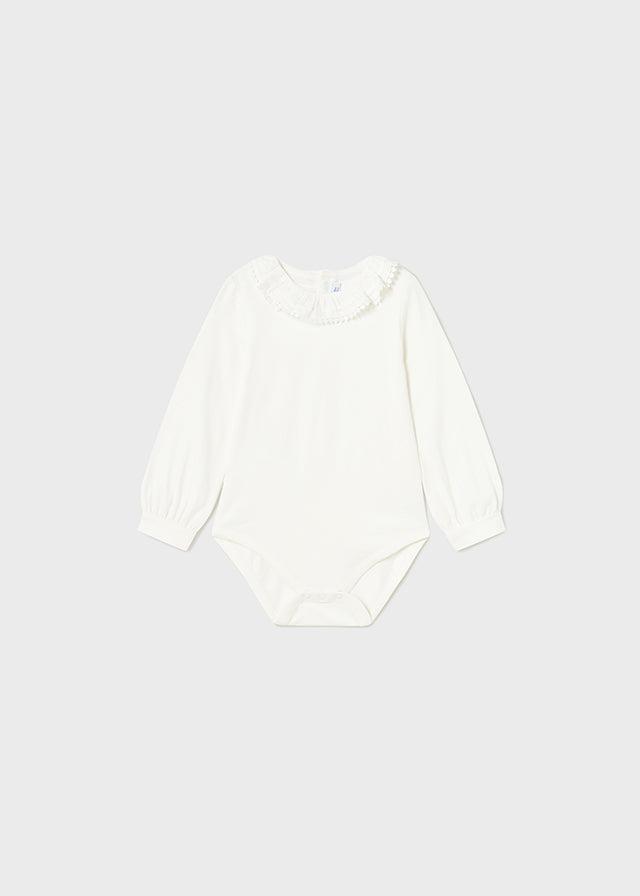 Langarm-Body aus warmer Baumwolle mit Rüschenkragen.