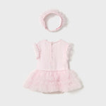 Body bretelle con volant per neonato. Piccola apertura sulla schiena con chiusura con bottone per facilitare la vestibilità del capo. Chiusura con bottoni nell'interno cosce.