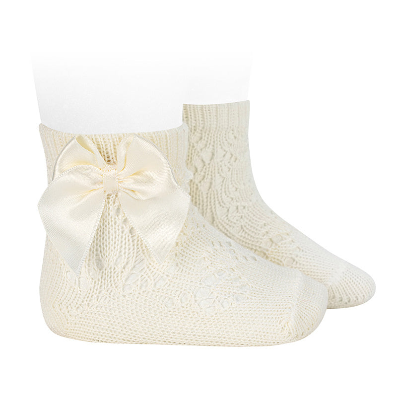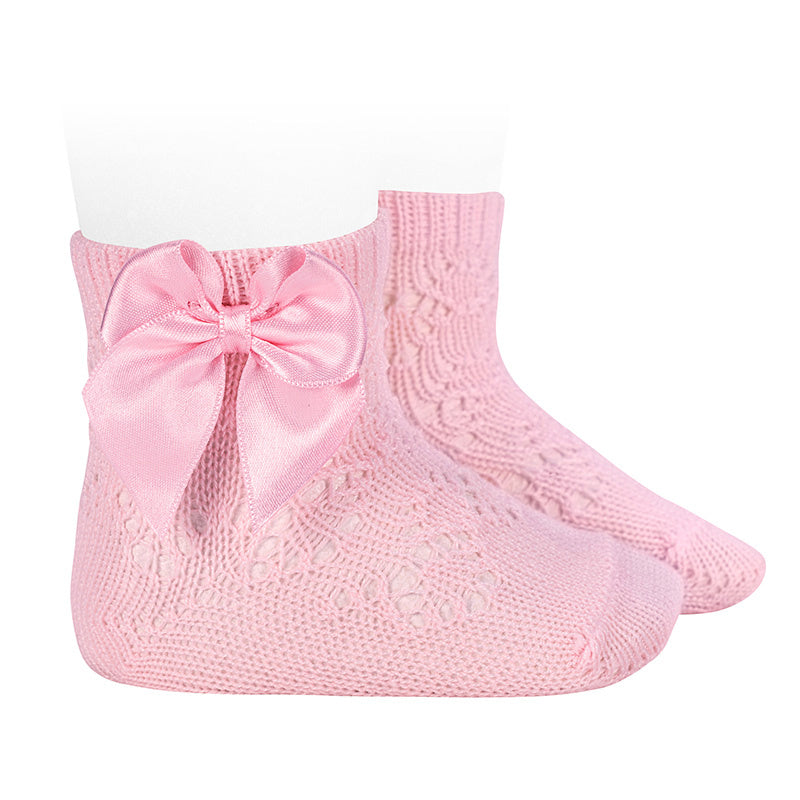 Kurze Baumwollsocken mit perforiertem geometrischem Muster und Schleife.