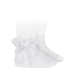 Kurze Glattstrickstrümpfe mit Organzaschleife.