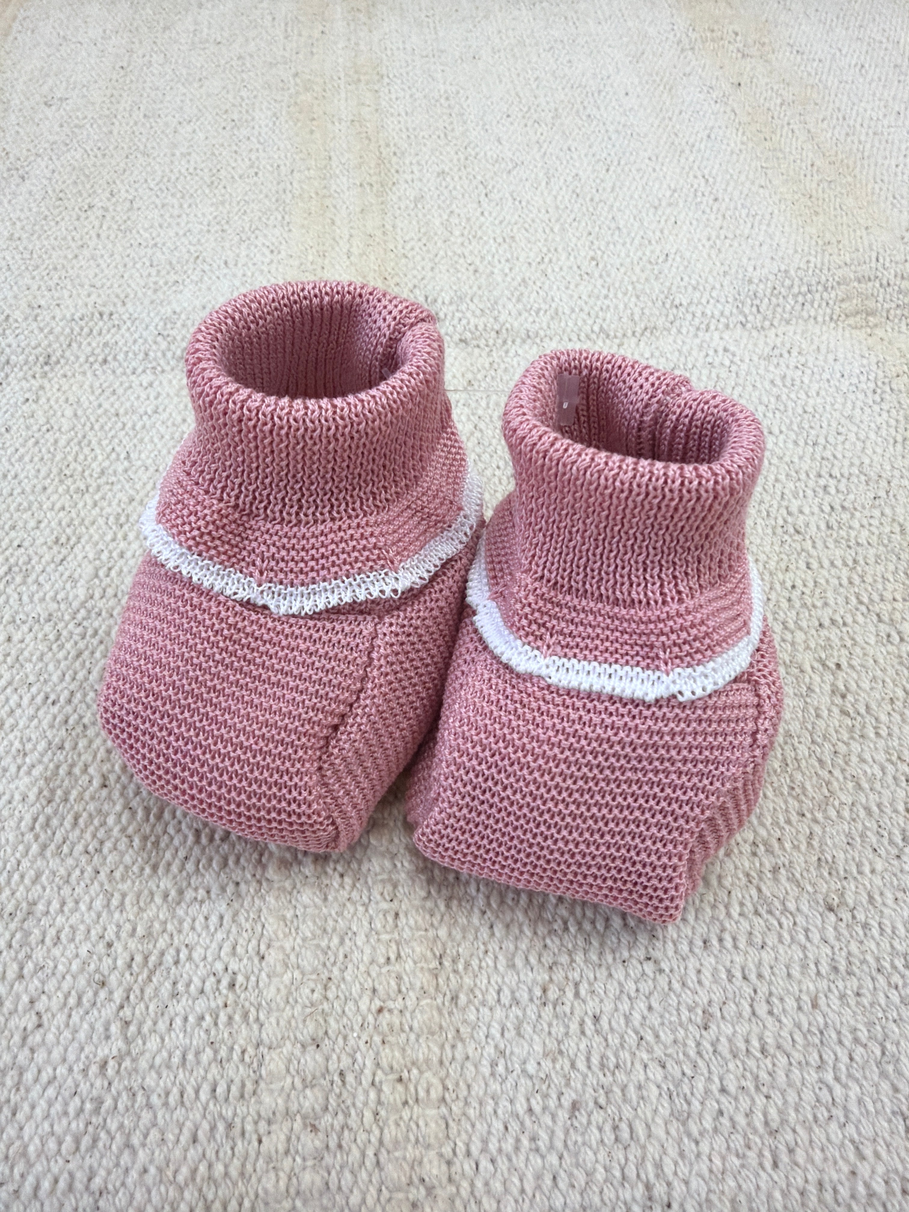 Delicati calzini-scarpetta realizzati in puro filo di cotone, perfetti per i neonati. Il design a scarpetta offre una vestibilità sicura e confortevole, mantenendo i piedini caldi senza costringere. Ideali per i primi mesi di vita, questi calzini combinano morbidezza e praticità, permettendo al bambino di muoversi liberamente. La qualità del cotone garantisce traspirabilità e delicatezza sulla pelle sensibile del neonato. Un accessorio essenziale per il guardaroba del vostro piccolo.