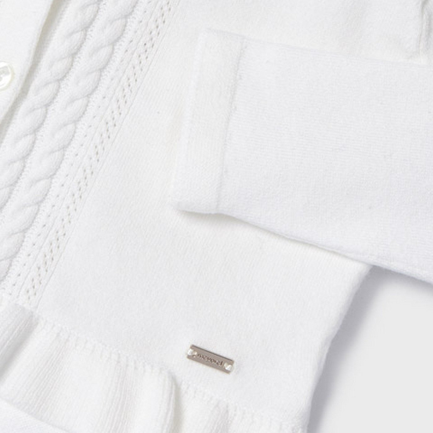 Strickjacke aus weißer Baumwolle.