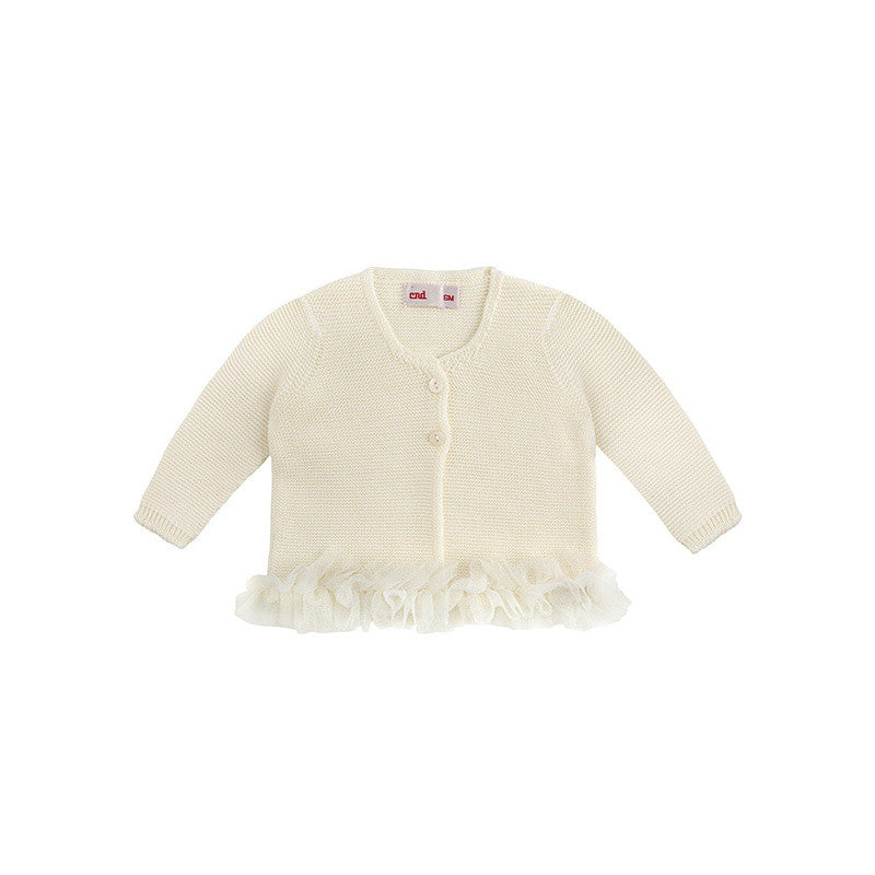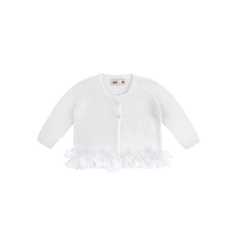 Baumwoll-Cardigan, lange Ärmel mit Tüll und Frontverschluss.