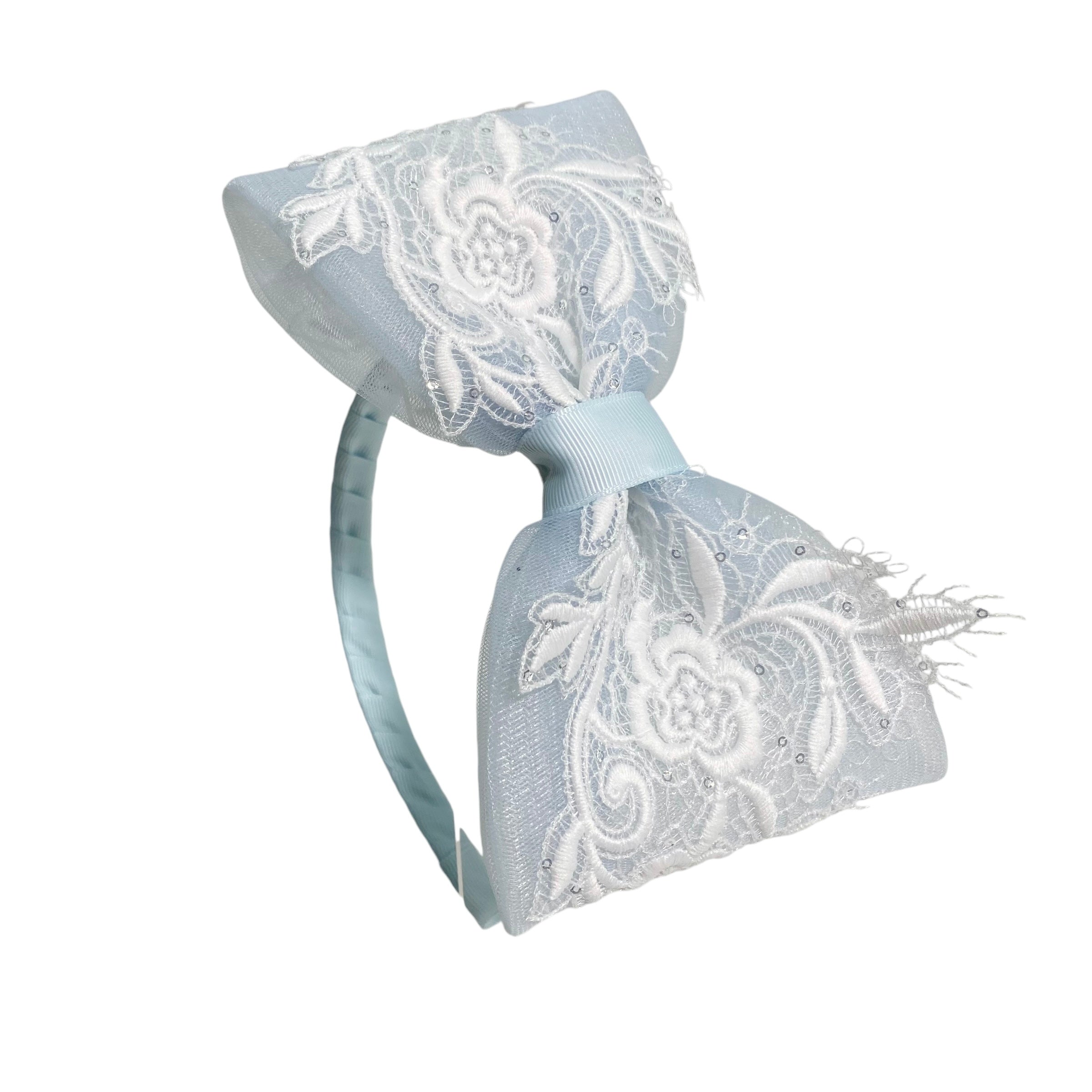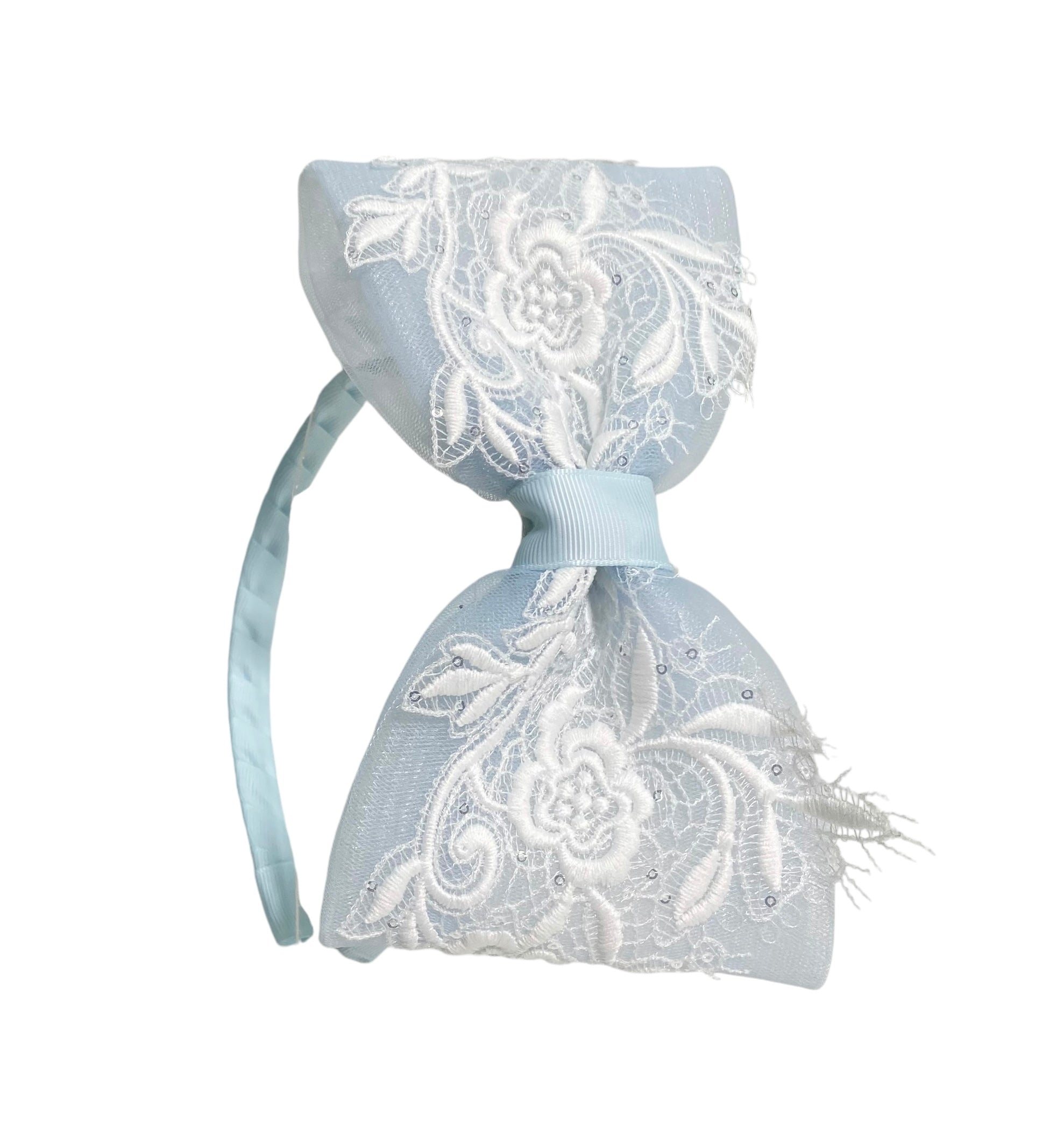 Questo elegante cerchietto per capelli ha un fiocco in tulle e applicazione in macrame', che lo rendono perfetto per completare il look della tua bambina. Aggiungi un tocco di eleganza ai suoi capelli con questo accessorio raffinato.