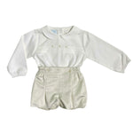 - Beige Samt-Bermudashorts mit Falten, Gummizug hinten an der Taille und an den Beinen