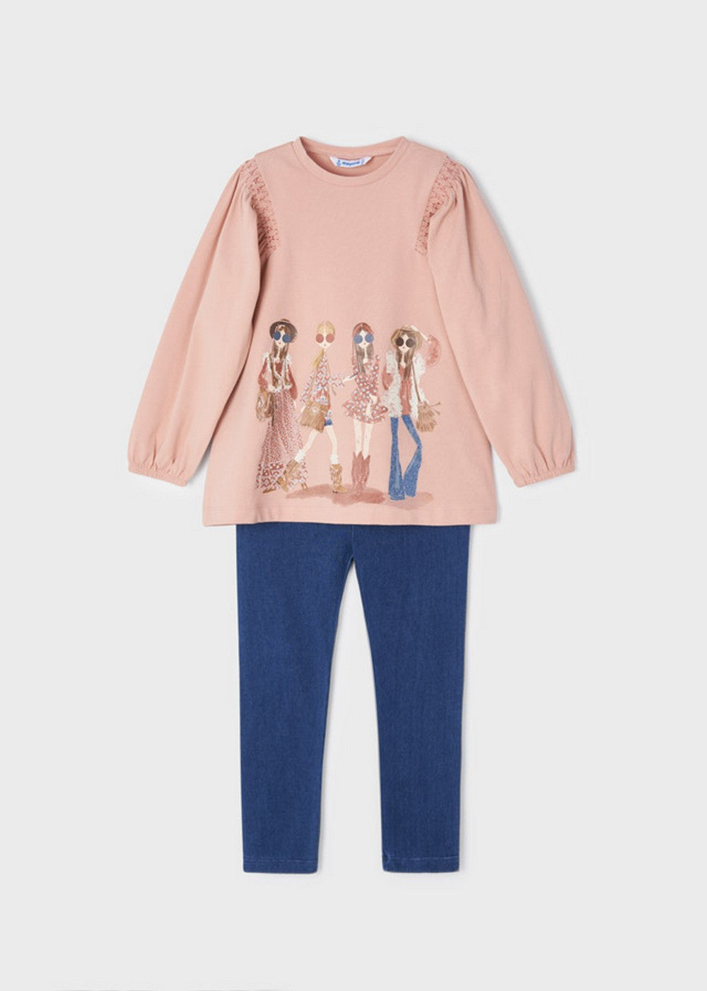 Zweiteiliges Set für Mädchen bestehend aus passendem T-Shirt und Leggings-Modellhose.