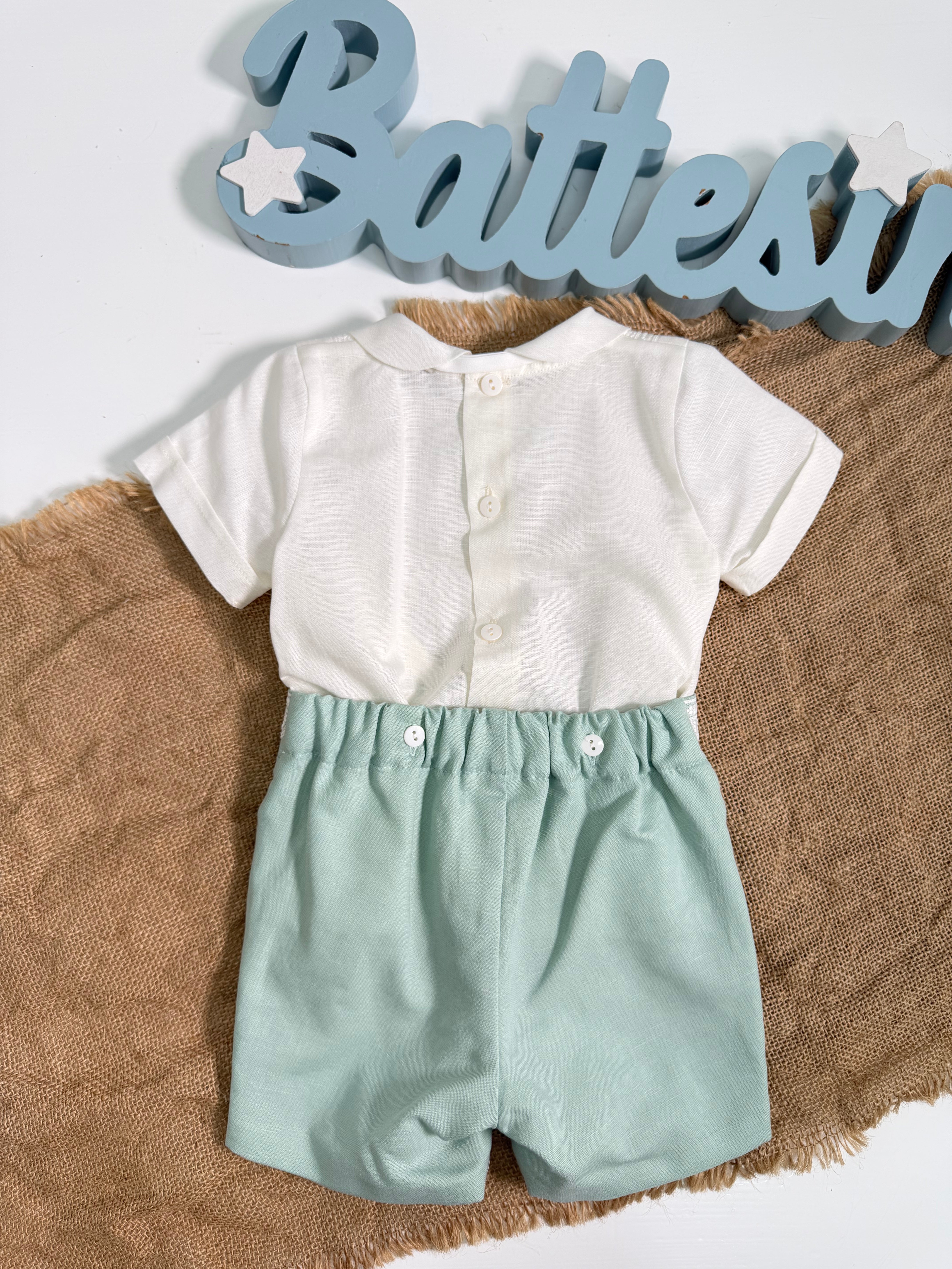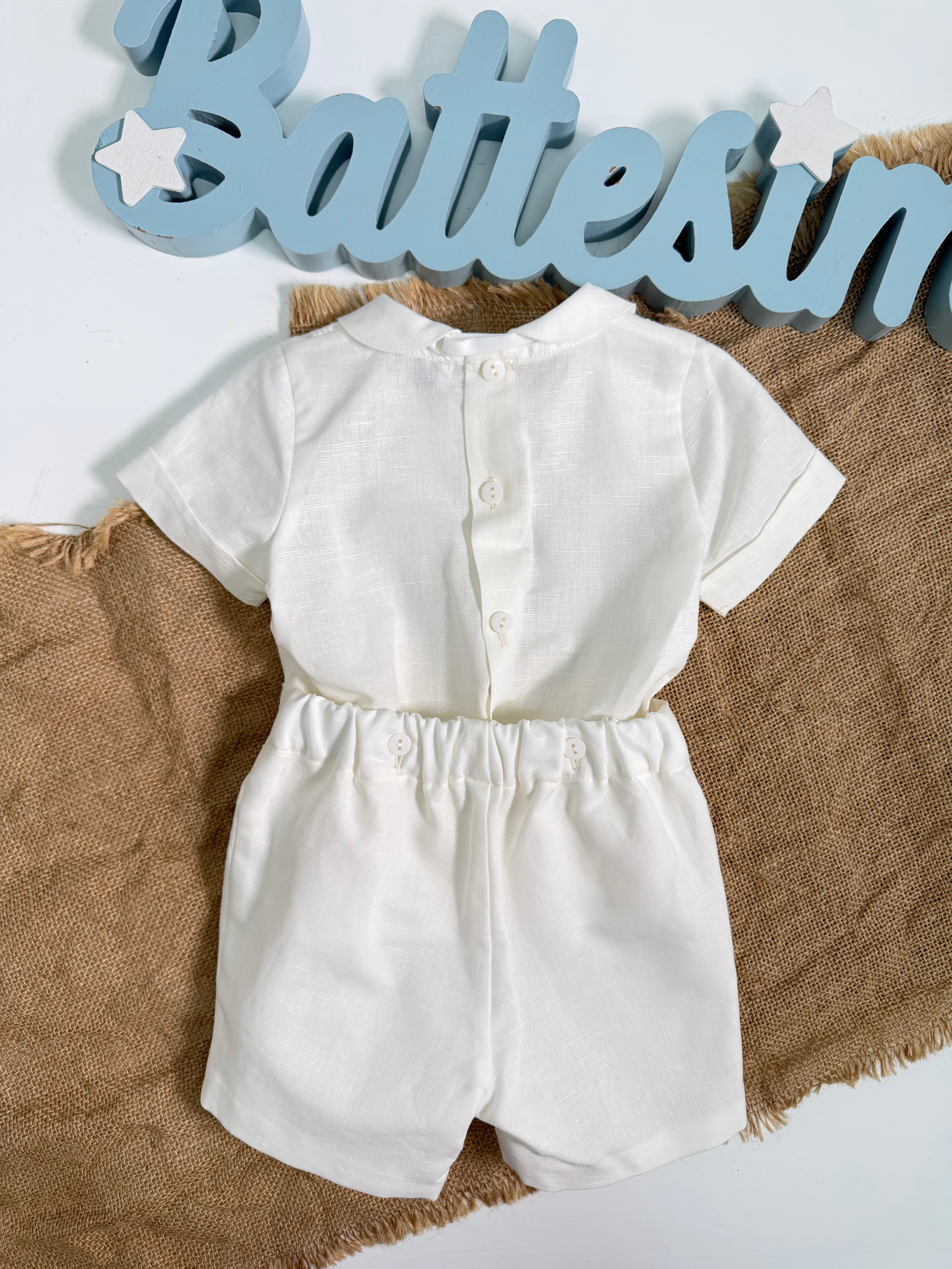 Completo Corto Elegante In Lino Con Bermuda Neonato PONTO POR PONTO 6498