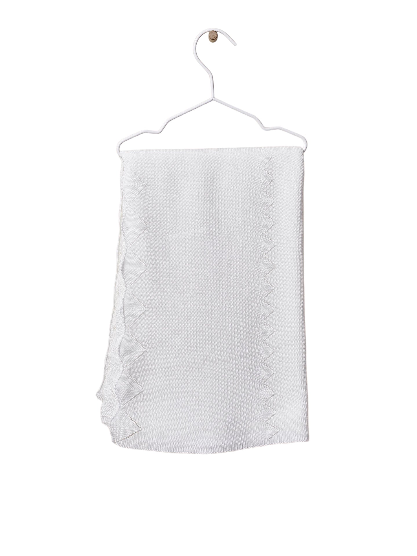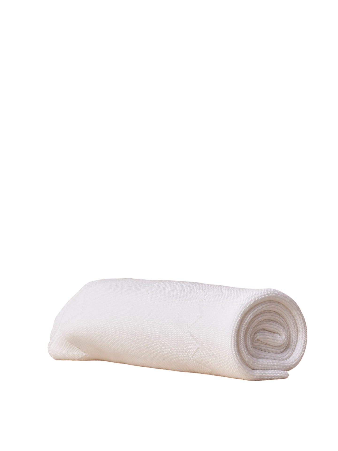 Decke aus warmer Bio-Baumwolle, einfarbig cremefarben, mit Perforationen innen.