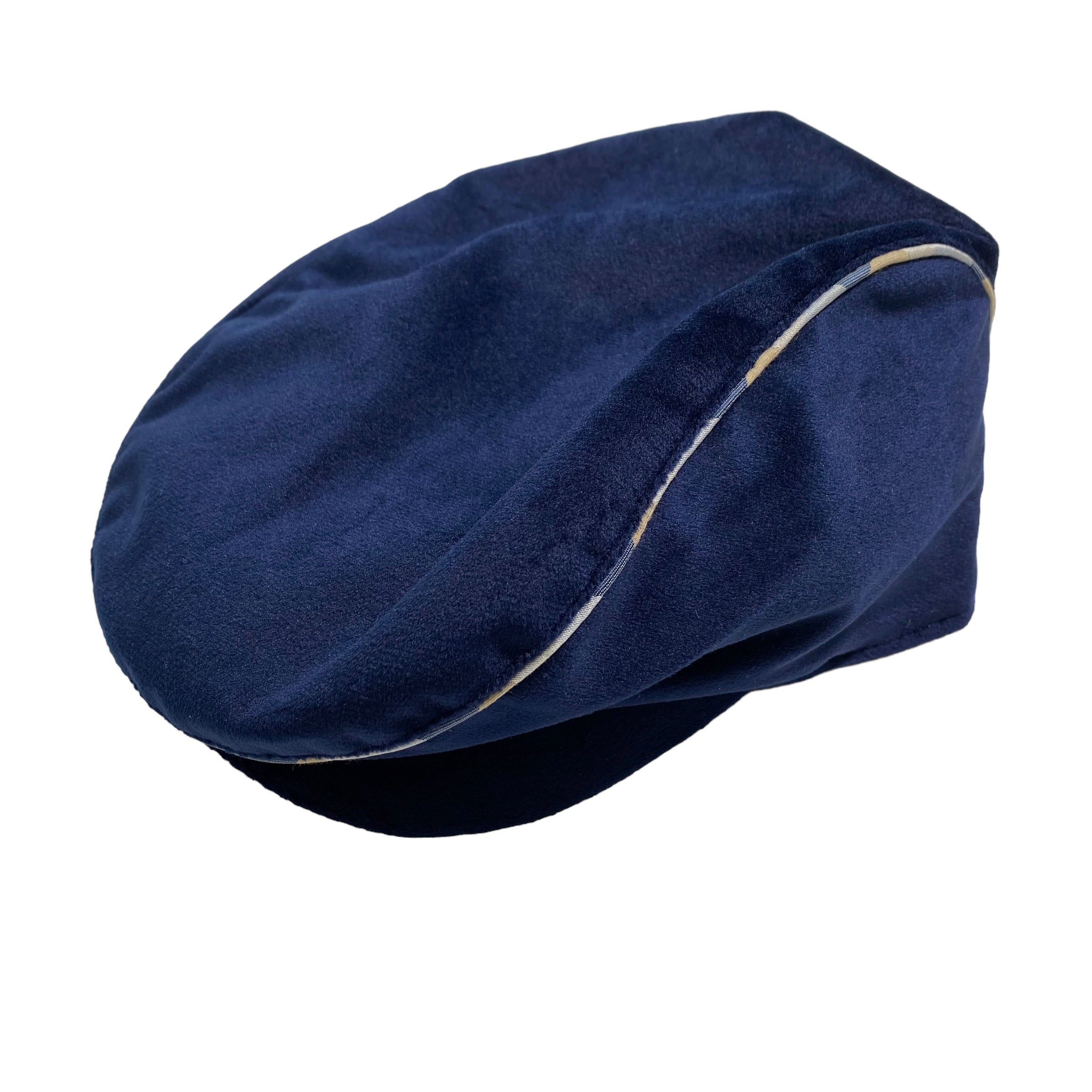 Schiebermütze aus blauem Samt.