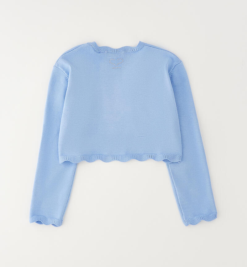 Scaldacuore per ragazza Sarabanda realizzato in tricot viscosa con delicata lavorazione. Il modello fa parte della collezione Sarabanda Premium pensata per vestire le cerimonie più formali
