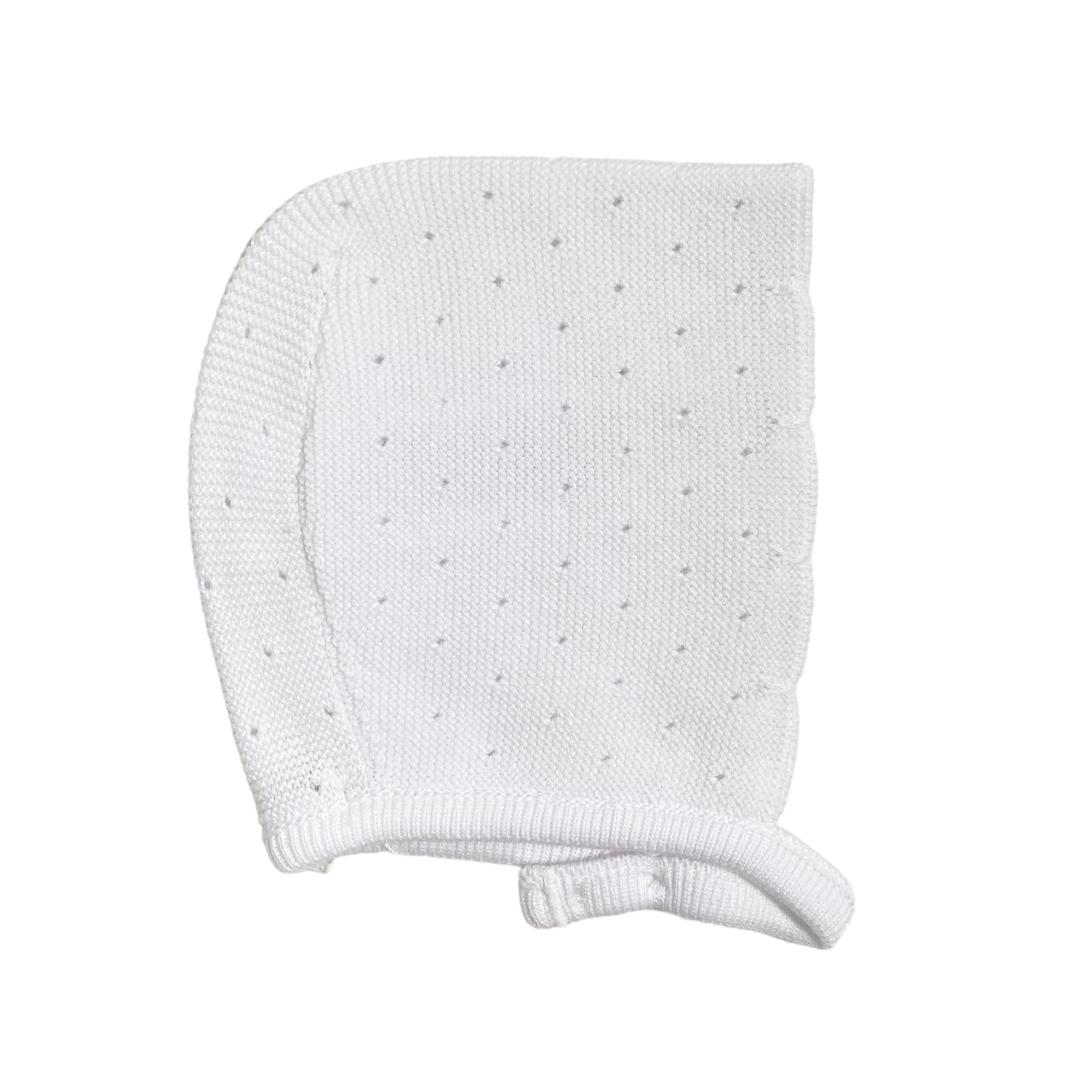 La cuffia in filo di cotone traforata per neonati è l'accessorio perfetto per la nuova arrivata. Realizzata in morbido cotone e dotata di uscita clinica, protegge la testa del tuo bebè con eleganza e delicatezza. Con il fiocco in organza, aggiunge un tocco di grazia a ogni outfit.