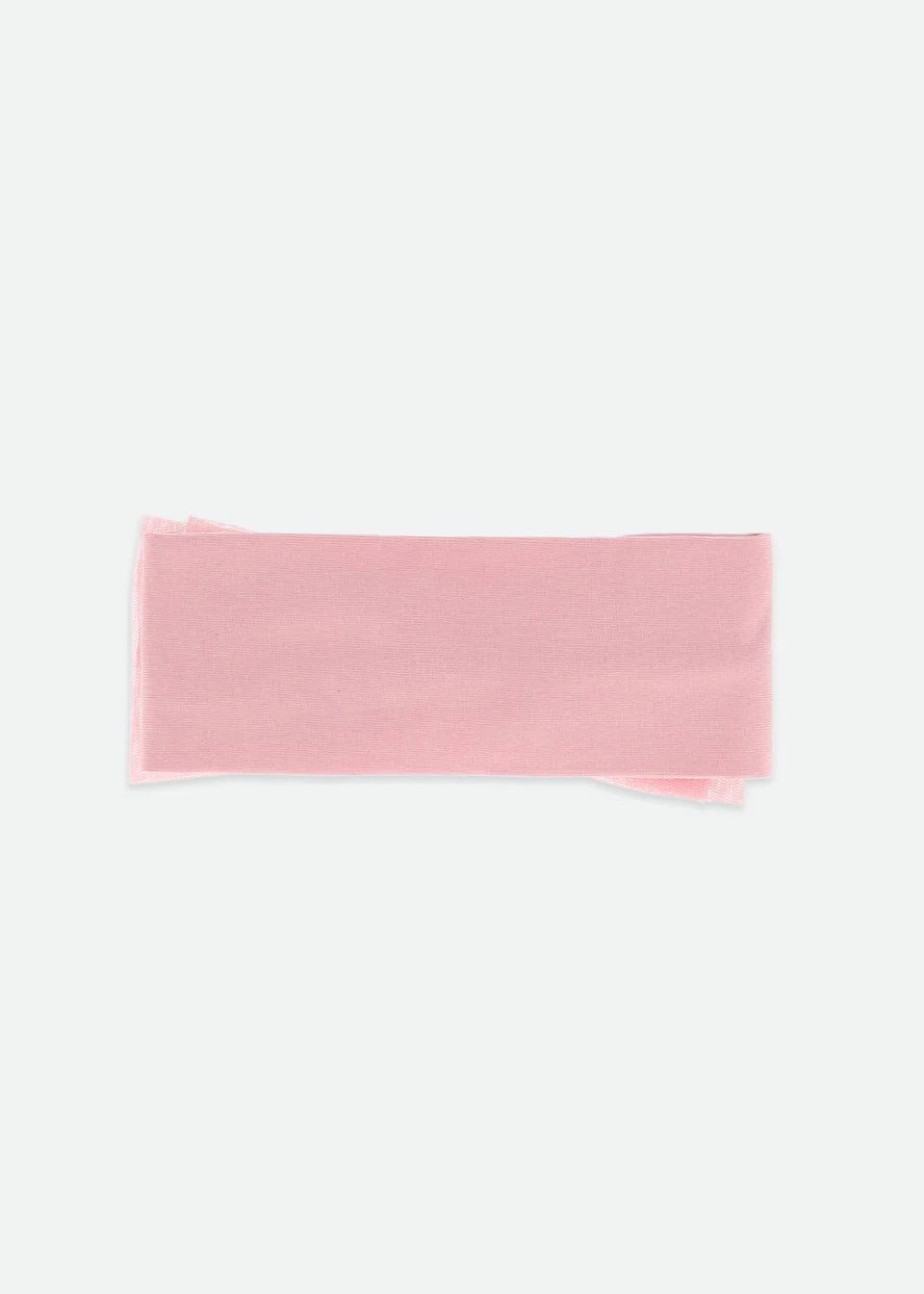Fascia per capelli con fiocco per neonata, color rosa tea, impreziosita da strati di morbido tulle. La fascia è realizzata in morbidissimo cotone elasticizzato per una vestibilità comoda e confortevole.