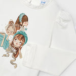 Questa maglietta in caldo cotone con stampa è perfetta per la bambina elegante e alla moda. Il girocollo la rende versatile e comoda da indossare in ogni occasione. Realizzata con materiali di alta qualità, la maglietta è un'ottima scelta per un look sofisticato e resistente.