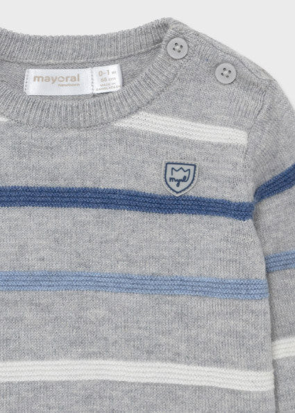 Langarmpullover für Neugeborene. Rundhalsausschnitt. Verschluss mit Knöpfen im Kragen, der das Tragen des Kleidungsstücks erleichtert. Saum mit Gummizug für eine bessere Passform.