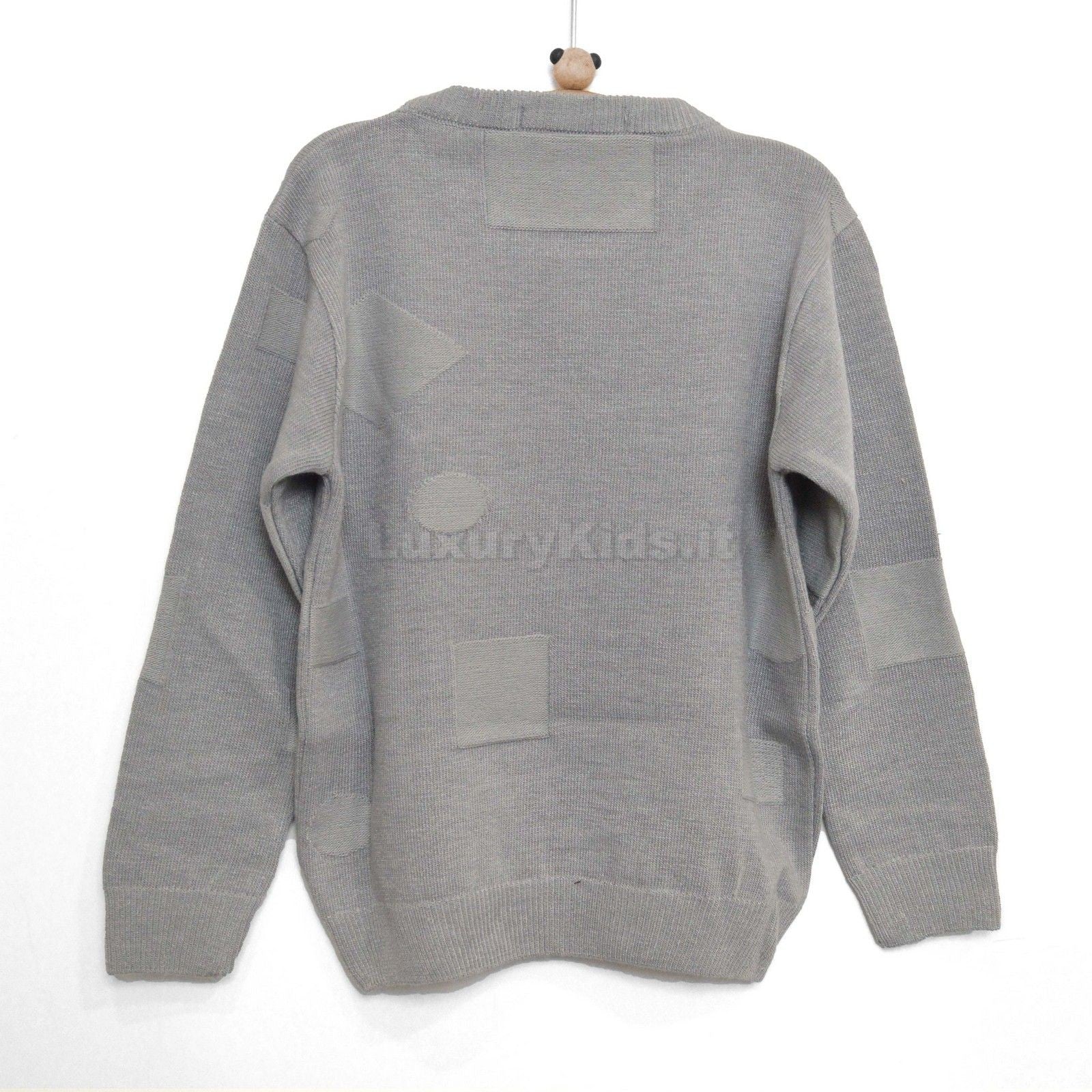 -Grauer Pullover aus Wollmischung mit geometrischen Stickereien