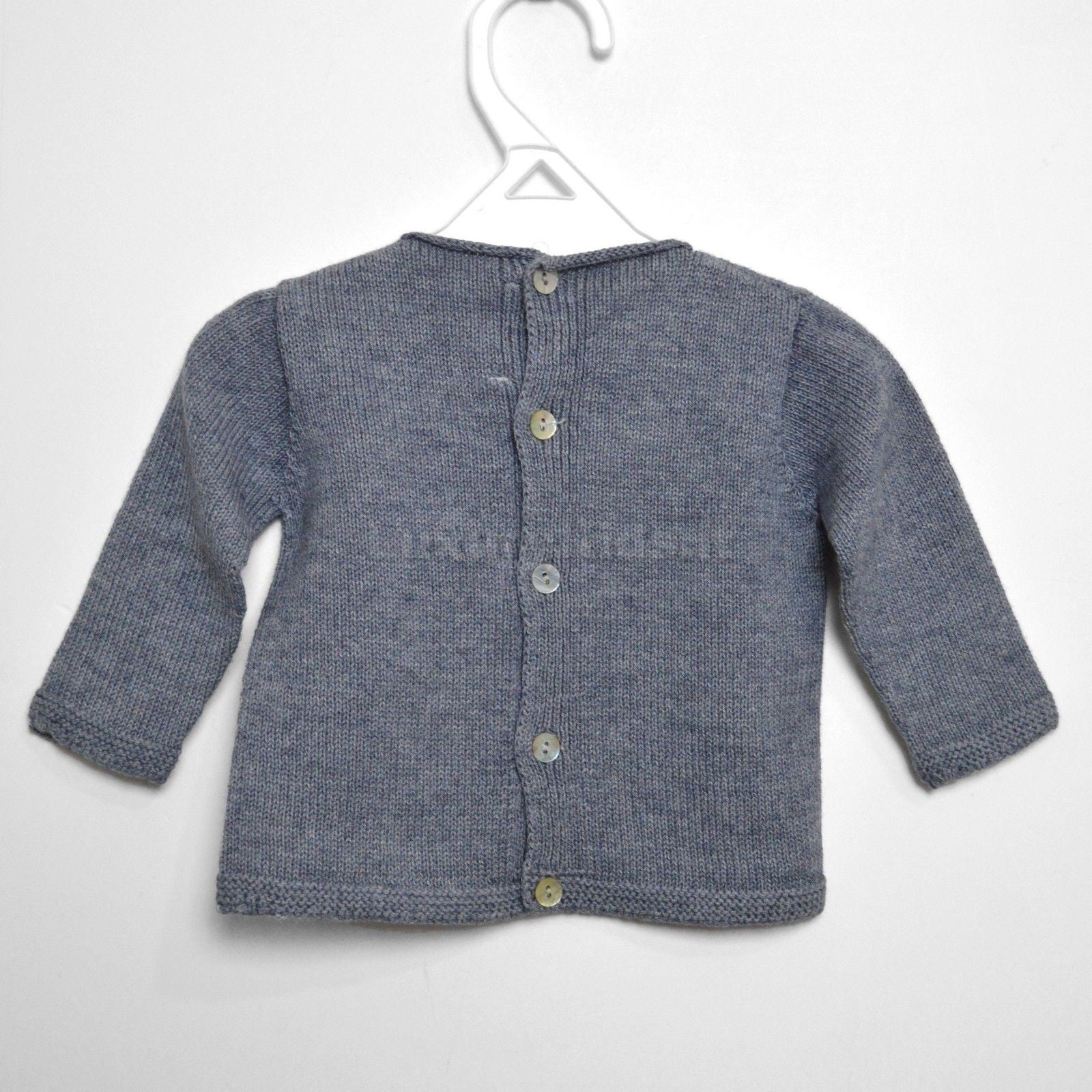 -Eleganter warmblauer einfarbiger Baumwollpullover mit Knopfleiste auf der Rückseite