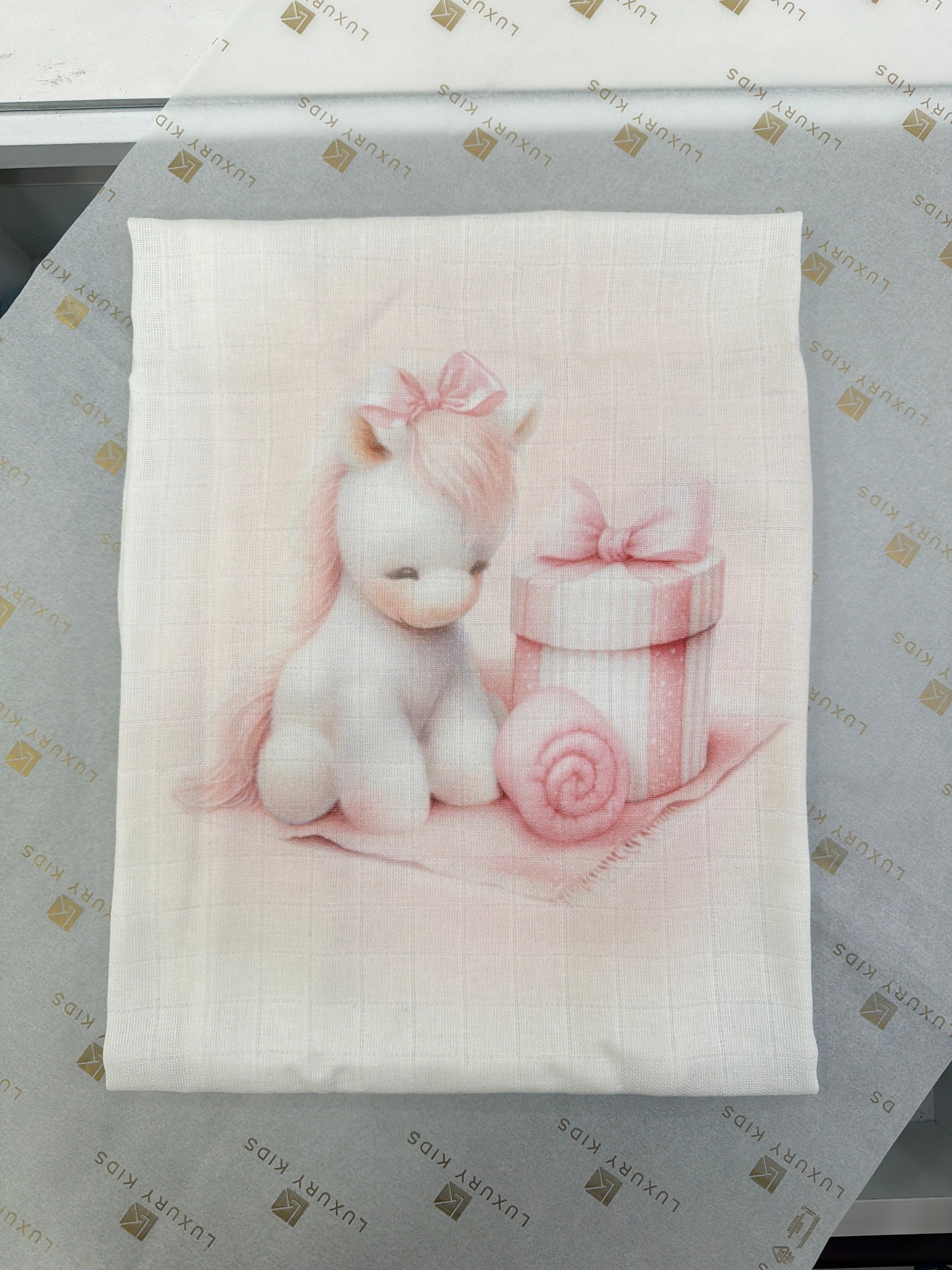 Praticità ed eleganza si uniscono in questa Mussola in Cotone con Stampa Di Cavalluccio Neonato/a FIRST BABY MUSLIN3. Realizzata in morbido cotone e disponibile nella dimensione 80*80cm, è perfetta per il corredino del tuo neonato/a. La stampa cavalluccio aggiunge un tocco di stile alla sua utilità.