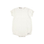 Delicato pagliaccetto in puro cotone per neonati, caratterizzato da maniche a mezza lunghezza e una lavorazione traforata che garantisce massima traspirazione. Il tessuto in filo di cotone assicura comfort e morbidezza sulla pelle sensibile del bambino, ideale per le stagioni intermedie. Il design elegante e raffinato lo rende perfetto per occasioni speciali o per l'uso quotidiano. Facile da indossare e da lavare, è un capo essenziale nel guardaroba del neonato che unisce praticità e stile.