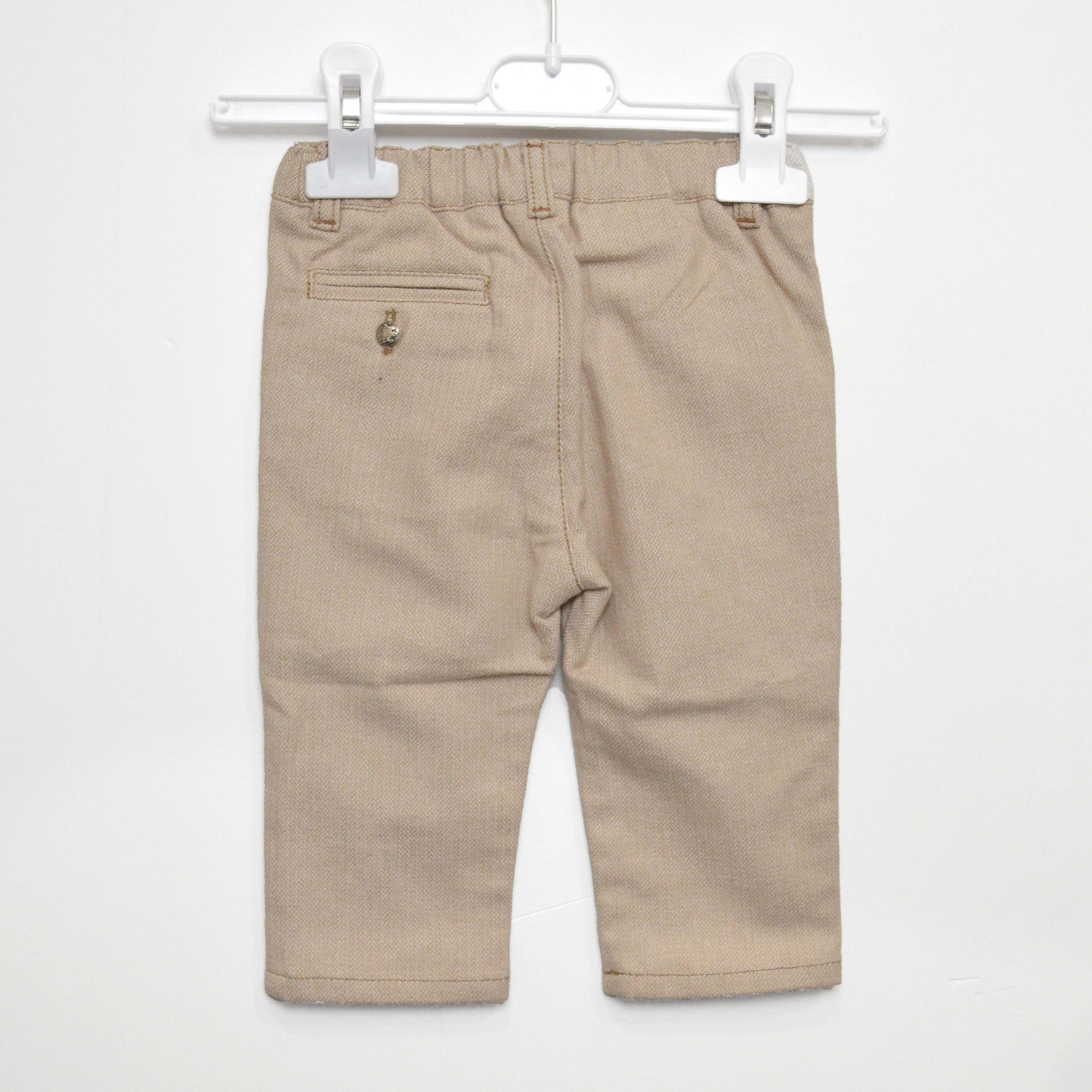 Elegante einfarbige beigefarbene Hose aus warmer Baumwolle mit elastischem Bund und America-Taschen