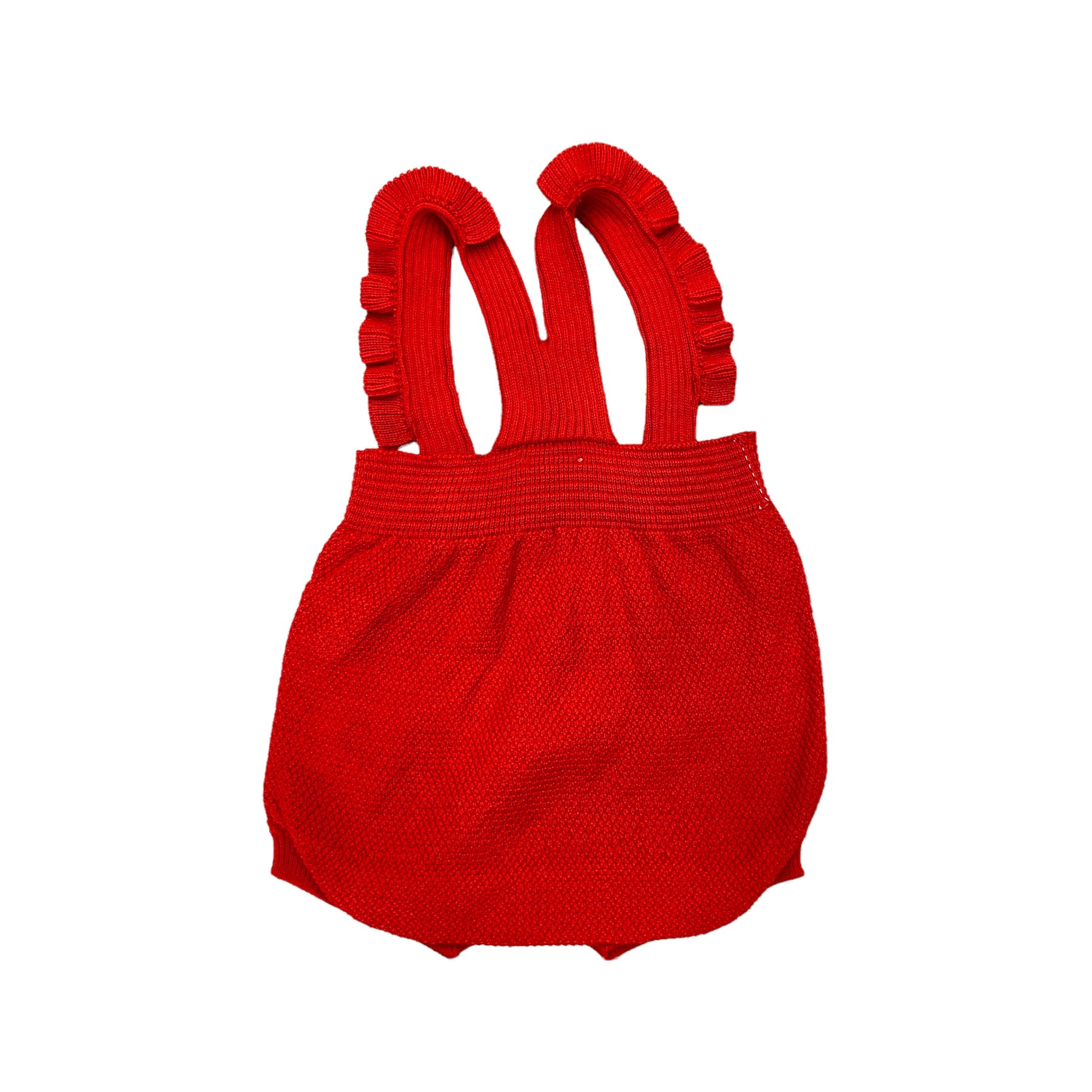 Breite Hosenträger mit Rüschen, um sie edler zu machen und mit einem Knopf an der hölzernen Taille zu befestigen.