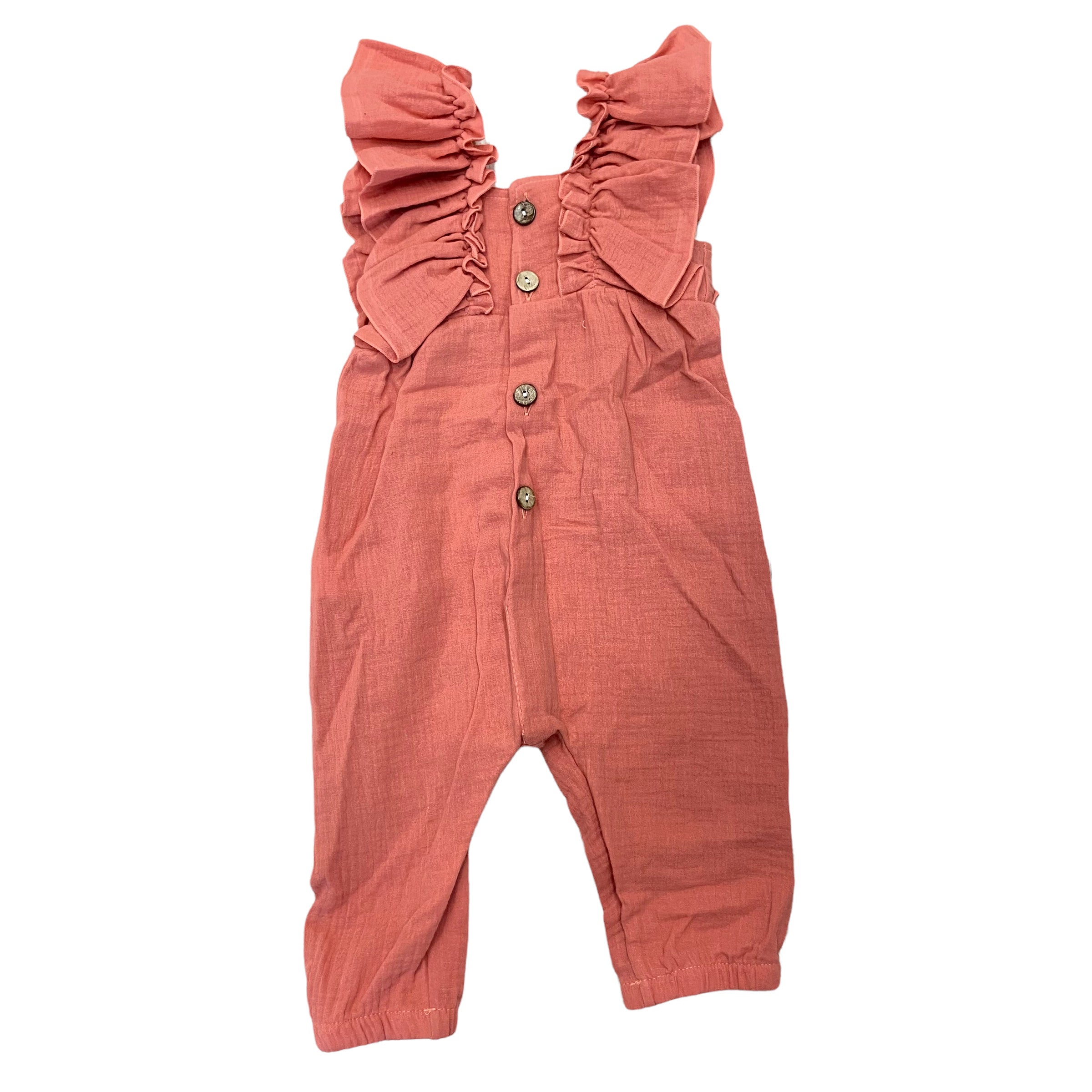Ganze Latzhose mit Rüschen aus korallenroter Baumwolle Kinder CALAMARO 32378