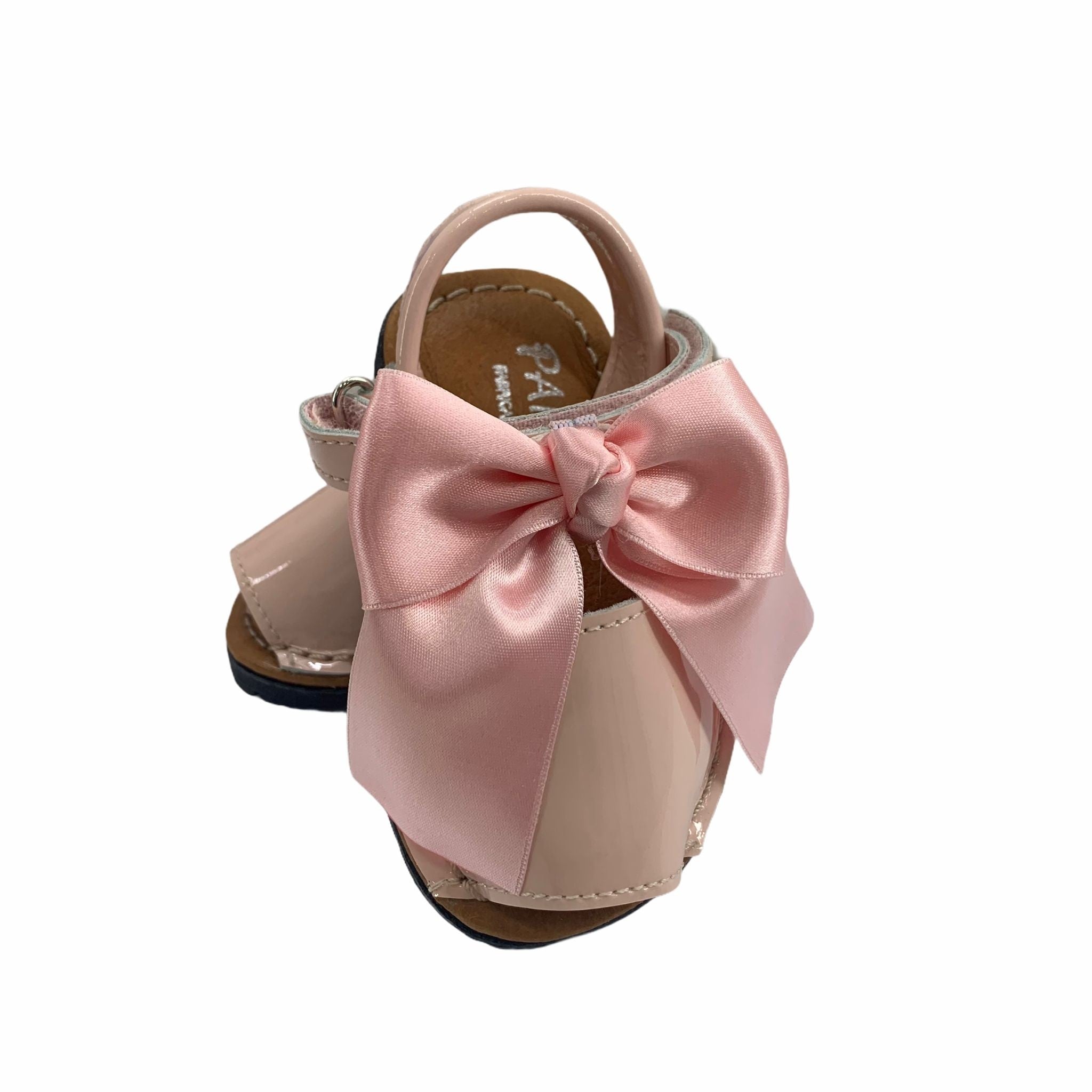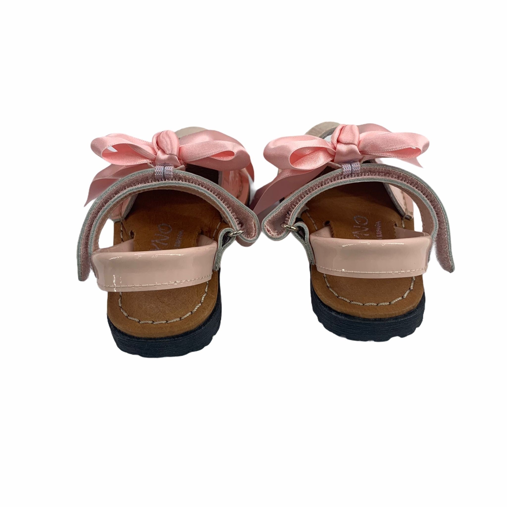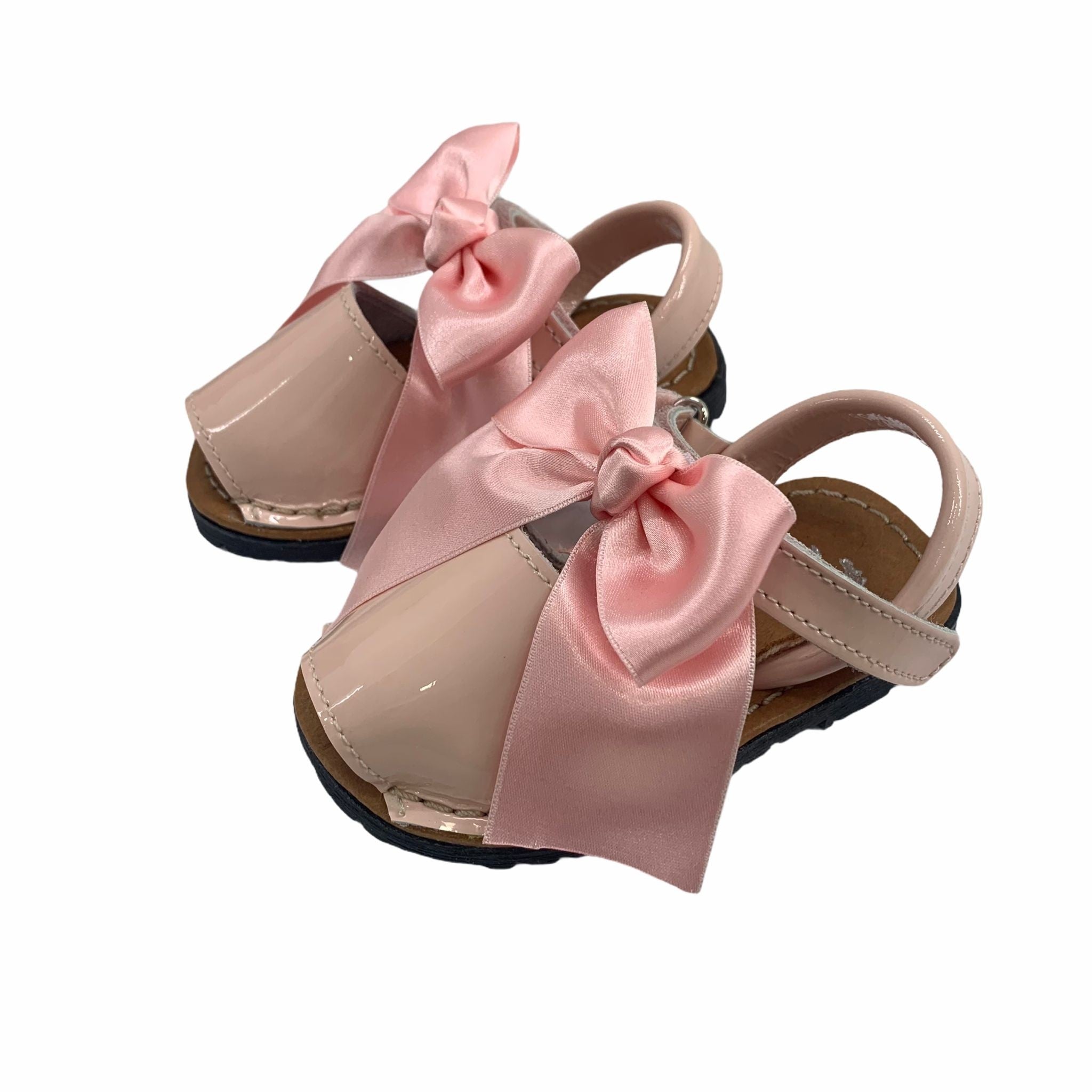 Espadrille-Sandale (Menorquinisch) Erste Schritte aus Leder, Riemenverschluss und Satinschleife (abnehmbar).